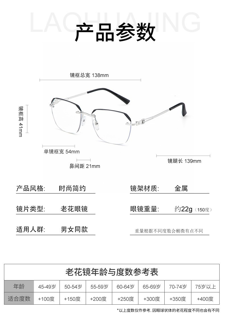 抖音爆款防蓝光老花镜时尚高清金属无框斯文老花眼镜商务气质男款