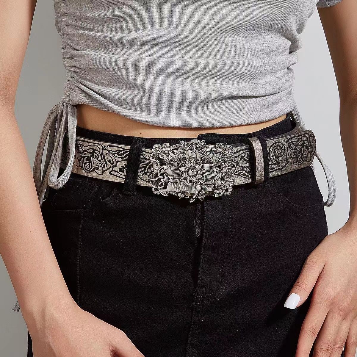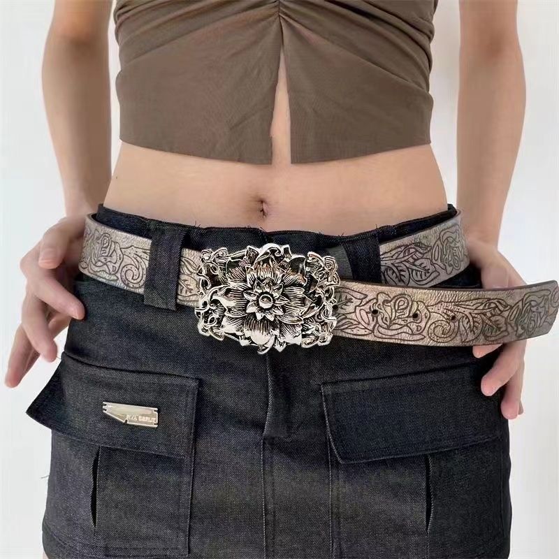 朋克风个性复古压花镂空腰带 y2k辣妹百搭哥特暗黑风皮带男女同款