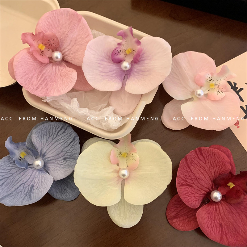 春夏新款新中式簪花超仙蝴蝶兰珍珠发夹鸭嘴夹旅游度假拍照发饰女