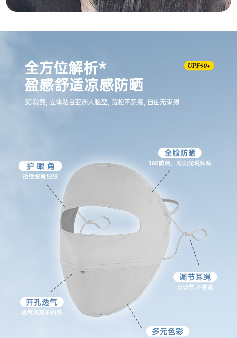 防晒面罩女秋冬薄款全脸防紫外线冰丝透气口罩开车骑行遮阳脸基尼