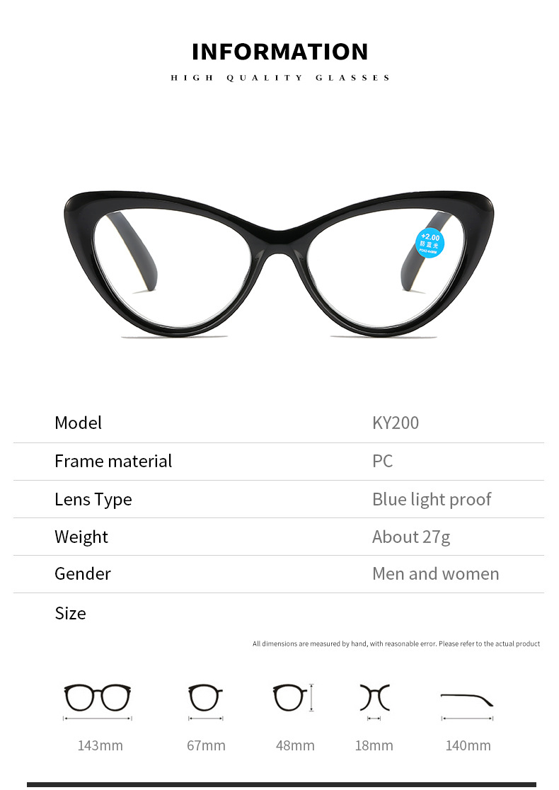 | anti-blue light +200 degrees(防蓝光+200度) | USD $0.0 | 28845 pair available |