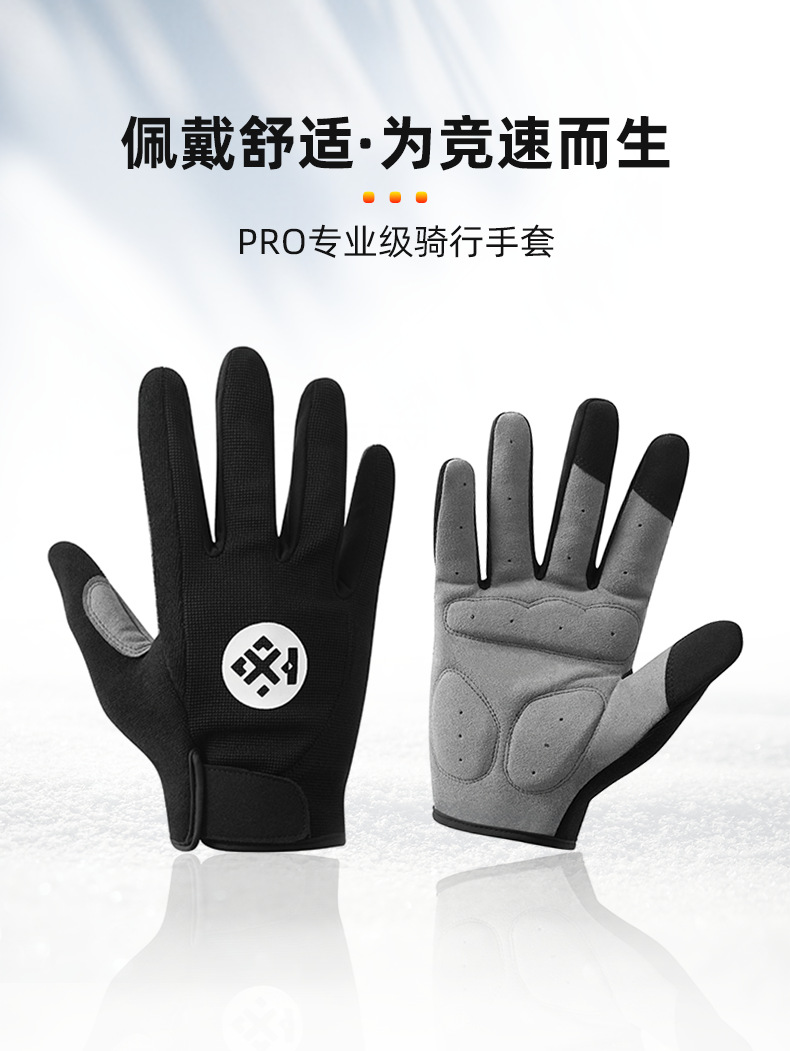 户外骑行手套男士掌心加厚骑车运动耐磨全指手套防滑登山触屏手套