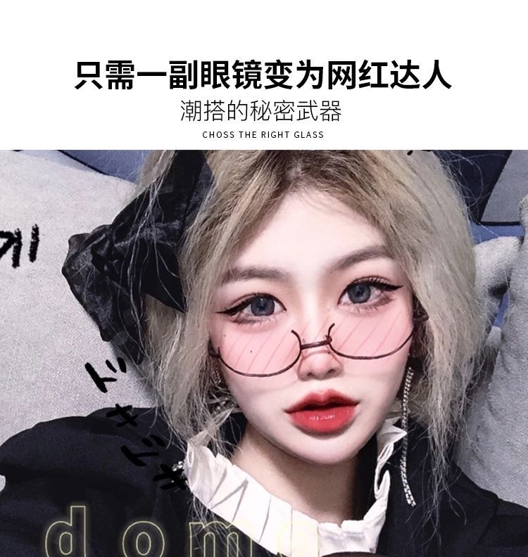 cosplay下半框禁欲风装饰眼镜网红无边框二次元御姐女jk软妹镜架