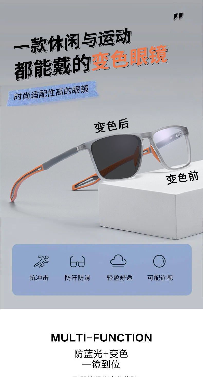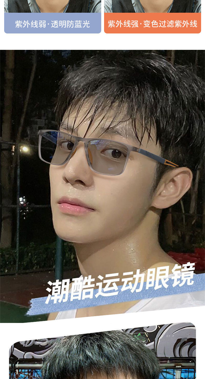 感光变色运动眼镜男学生超轻舒适防甩防滑防蓝光近视眼镜框架批发