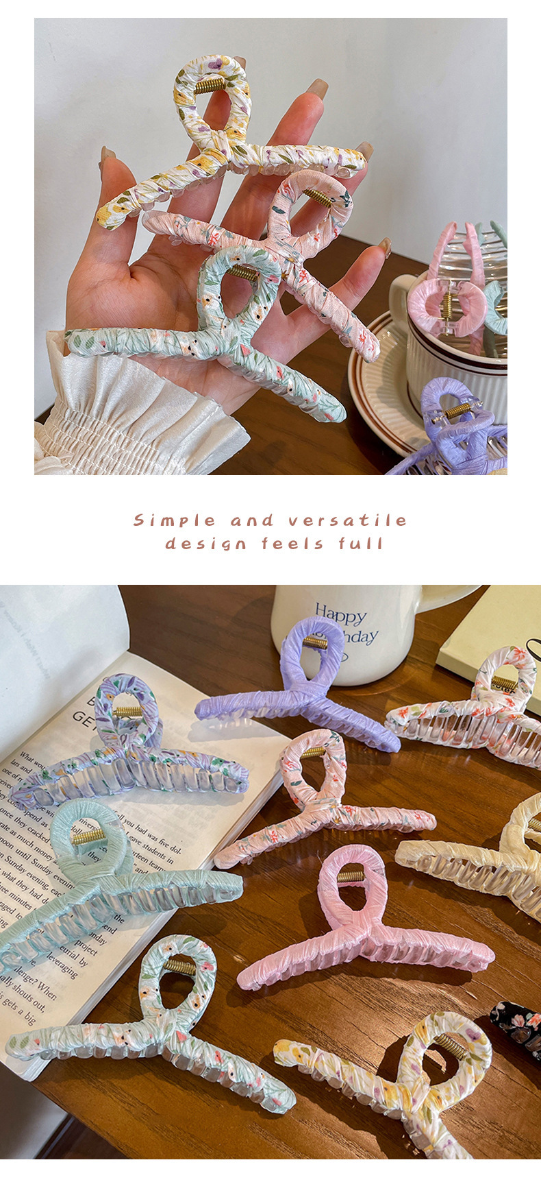 奶油色碎花简约发夹女可爱发饰发夹韩国新款碎花布艺缠绕大号抓夹