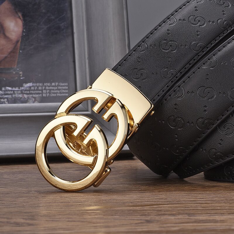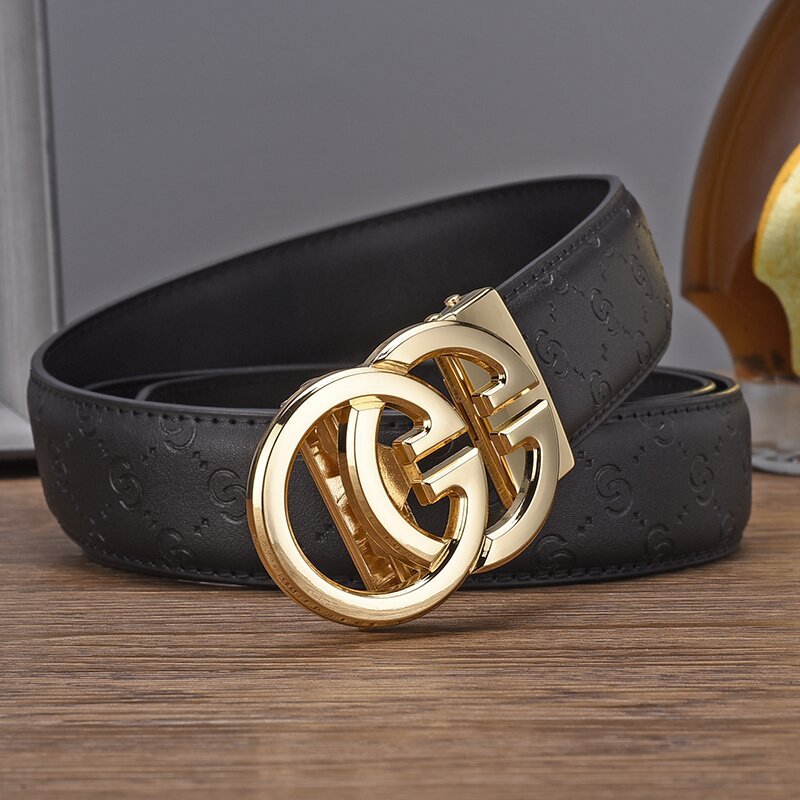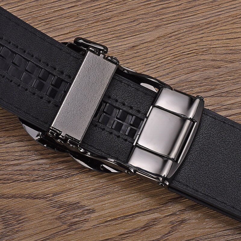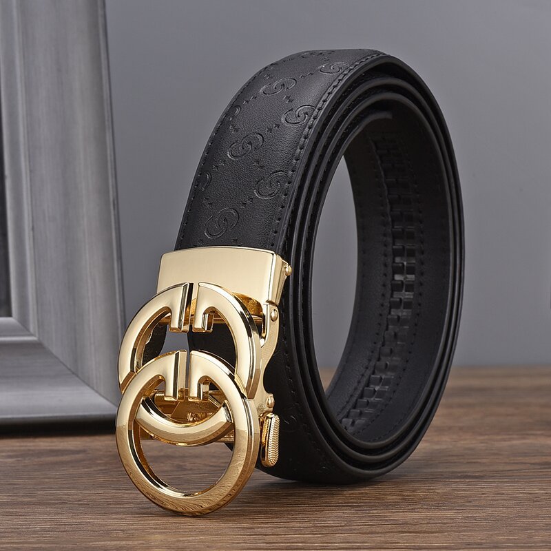 皮带男士高档合金自动扣牛皮压花腰带简约休闲男式裤带现货批发