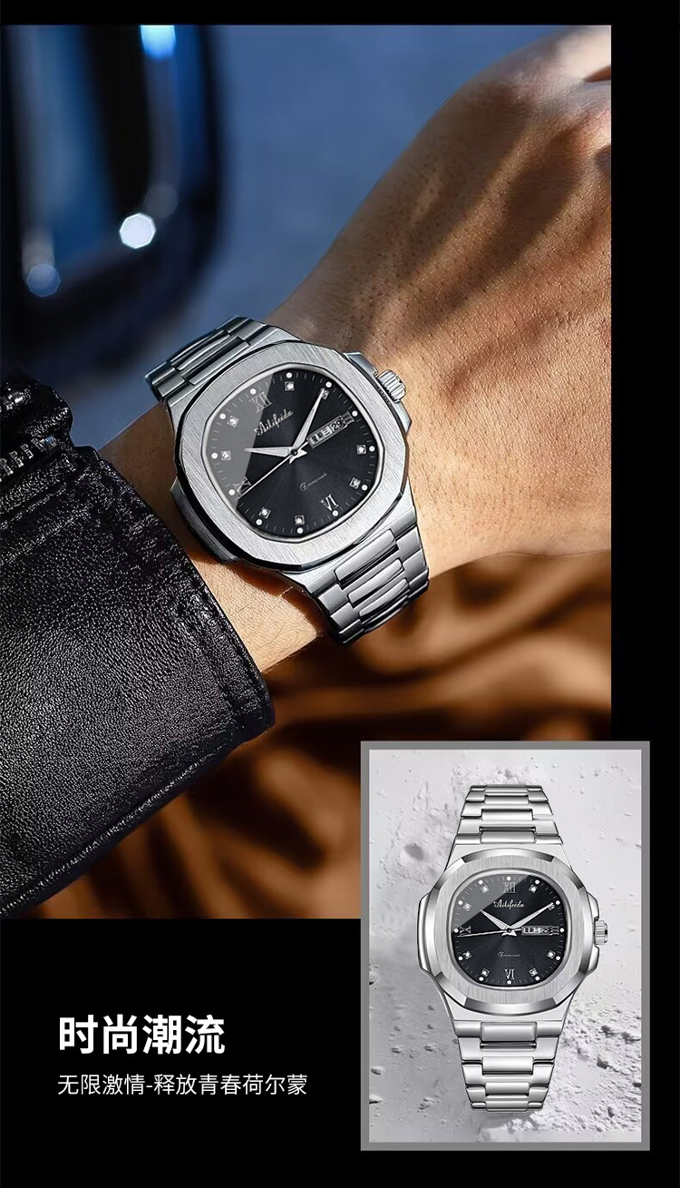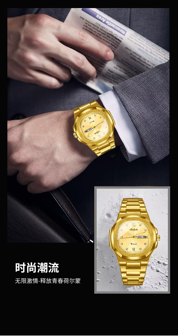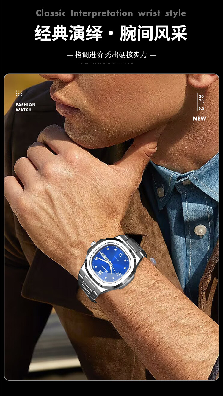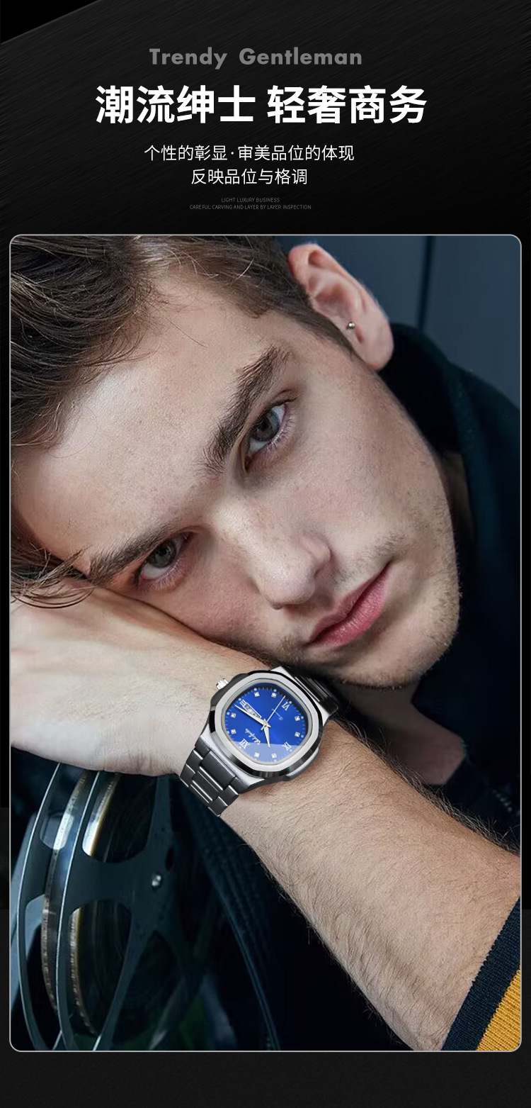 新款鹦鹉螺石英手表男士超薄夜光蝴蝶扣抖音直播带货一件代发防水