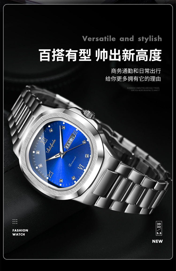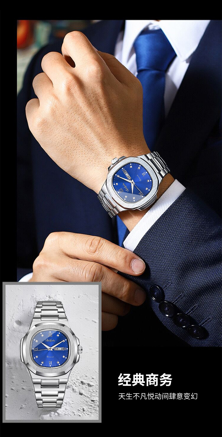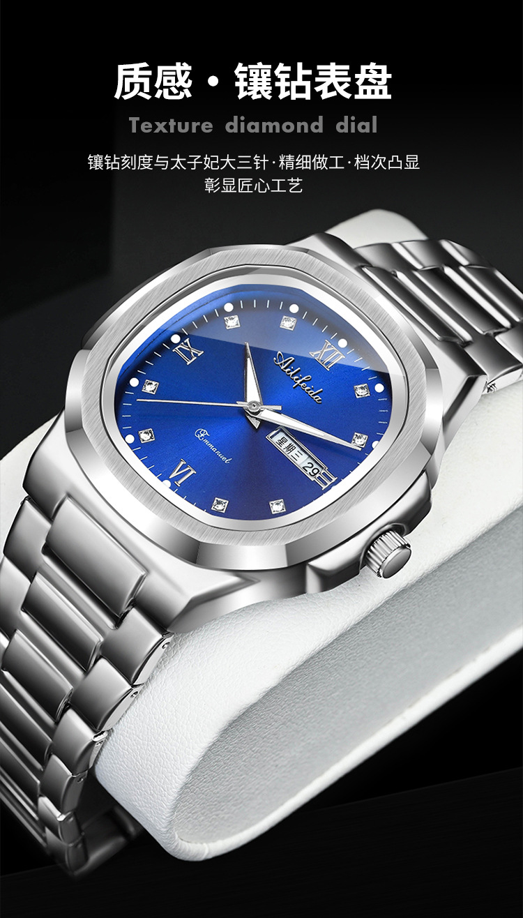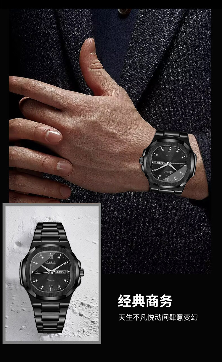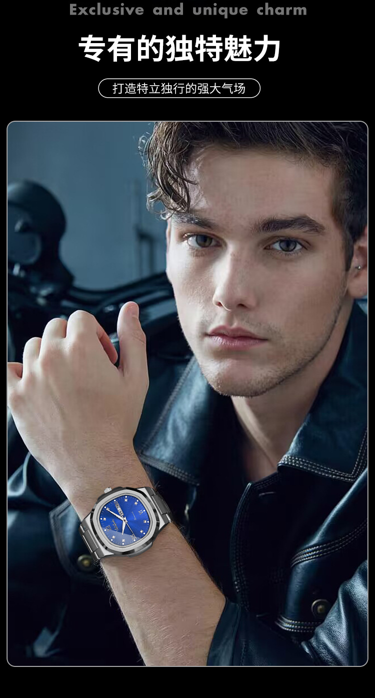 新款鹦鹉螺石英手表男士超薄夜光蝴蝶扣抖音直播带货一件代发防水