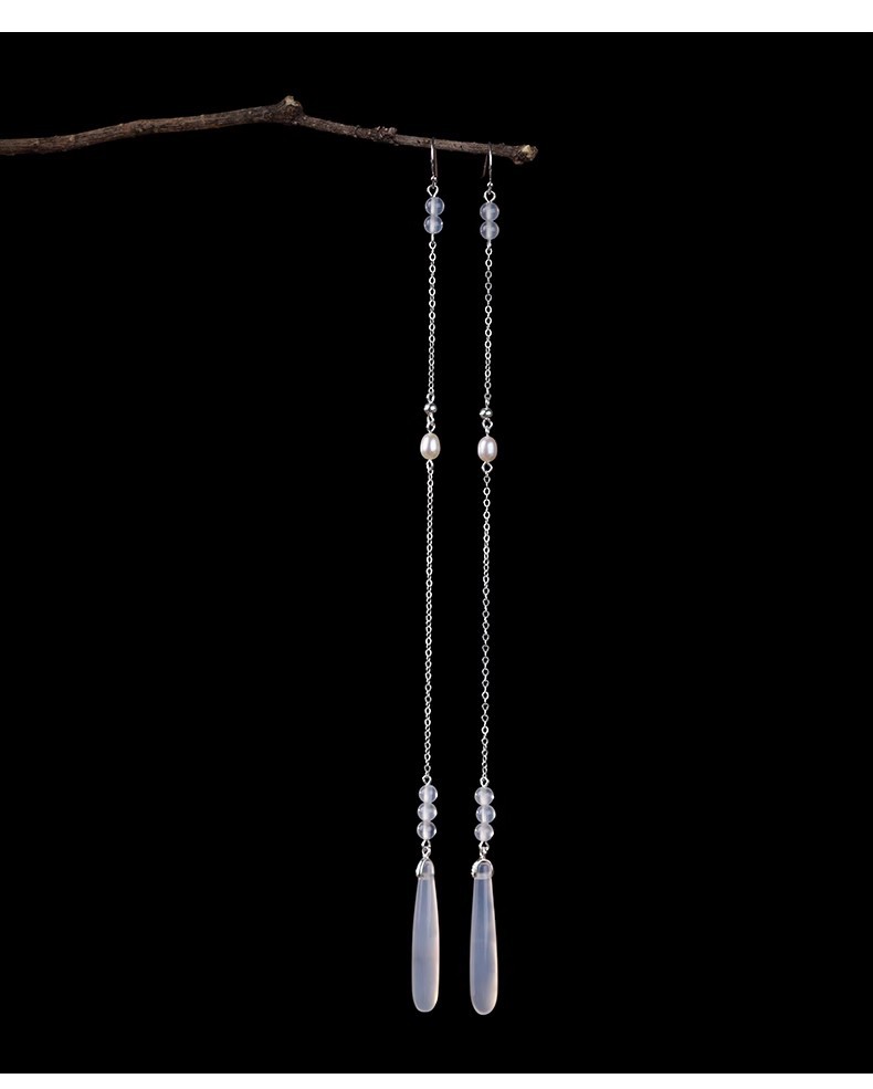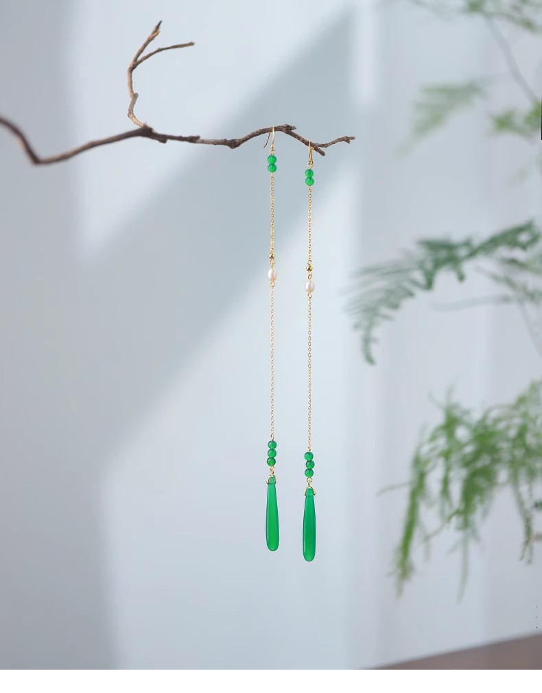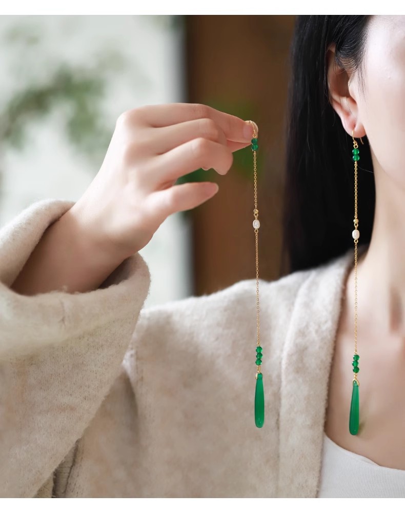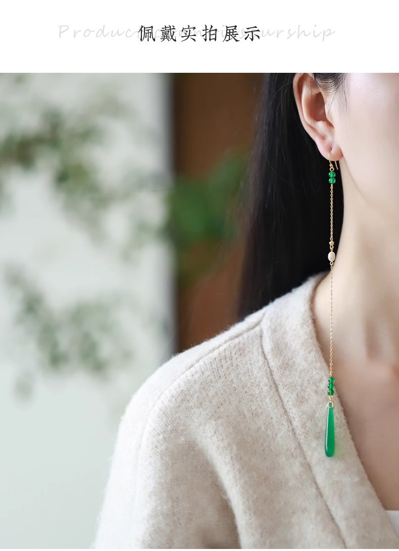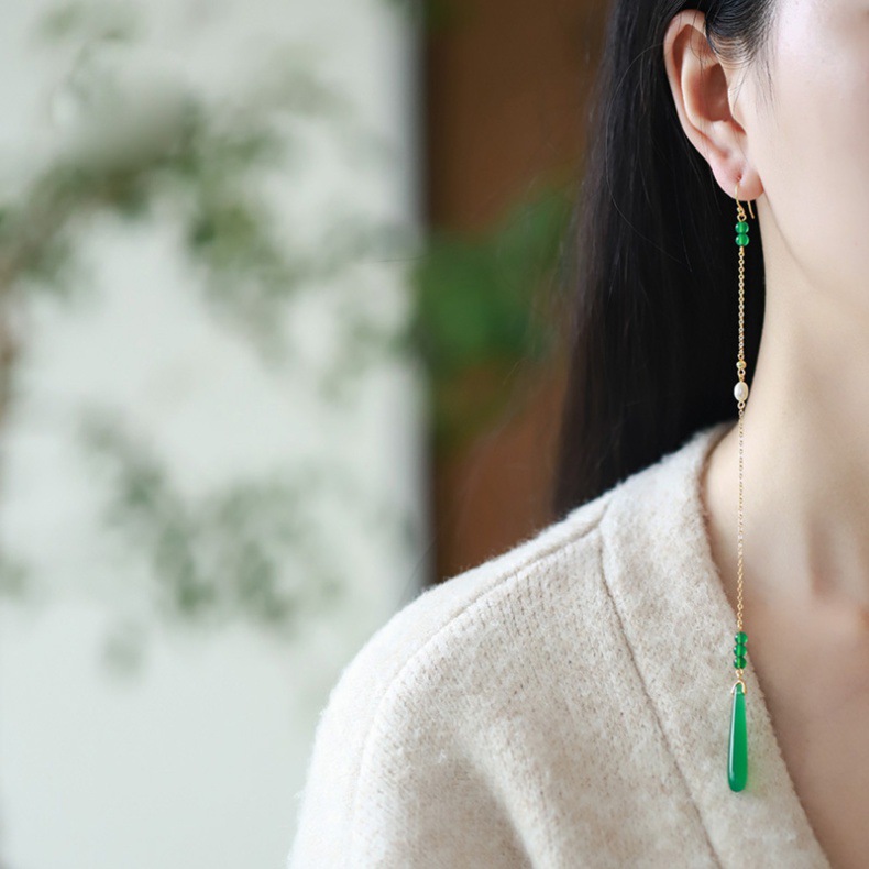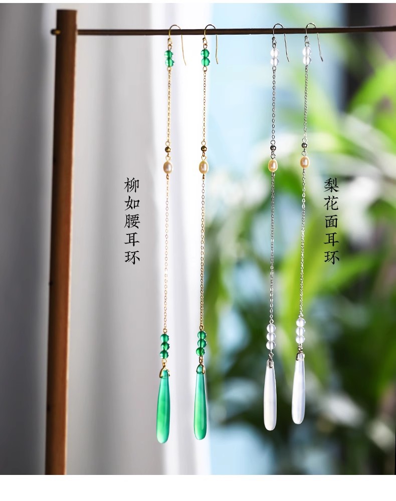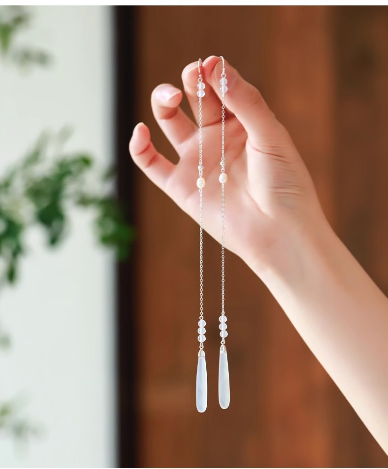 新中式古风清冷感耳坠长款流苏耳线女纯银马面裙旗袍耳环