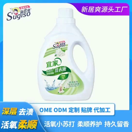 新居爽小苏打洗衣液批发厂家2KG瓶装活氧低泡衣物柔顺去污清洗液
