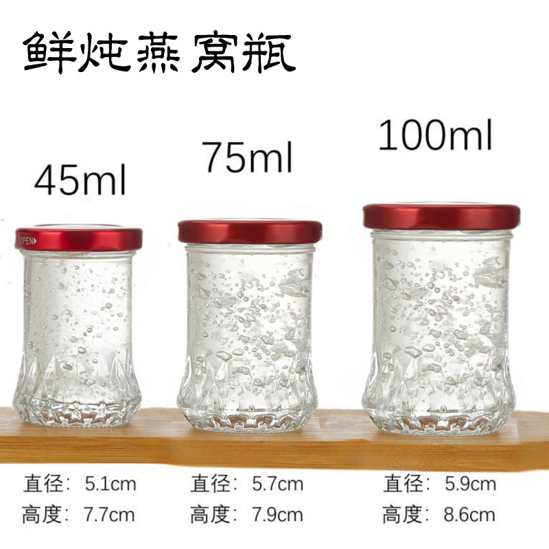 新款鲜炖燕窝瓶钻石仙炖裙边玻璃瓶耐高温透明花胶即食空瓶子密封