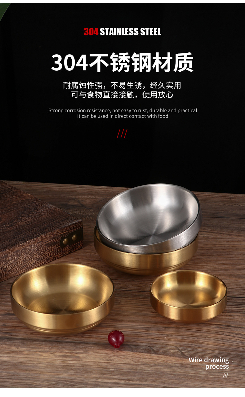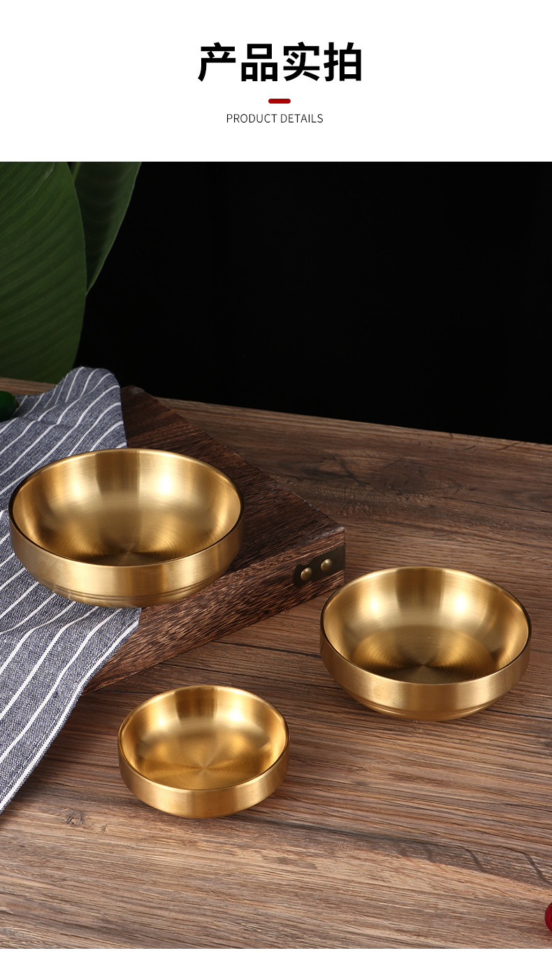 直供韩式金色304不锈钢调料碟 创意韩国泡菜凉菜米饭料理小碗批发