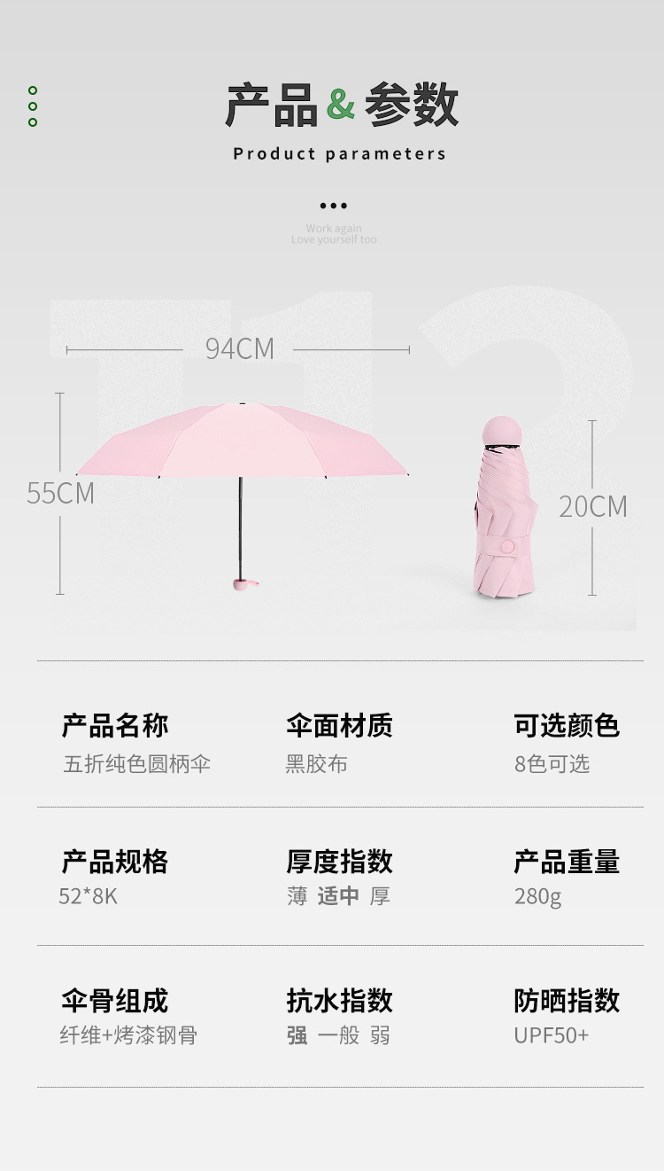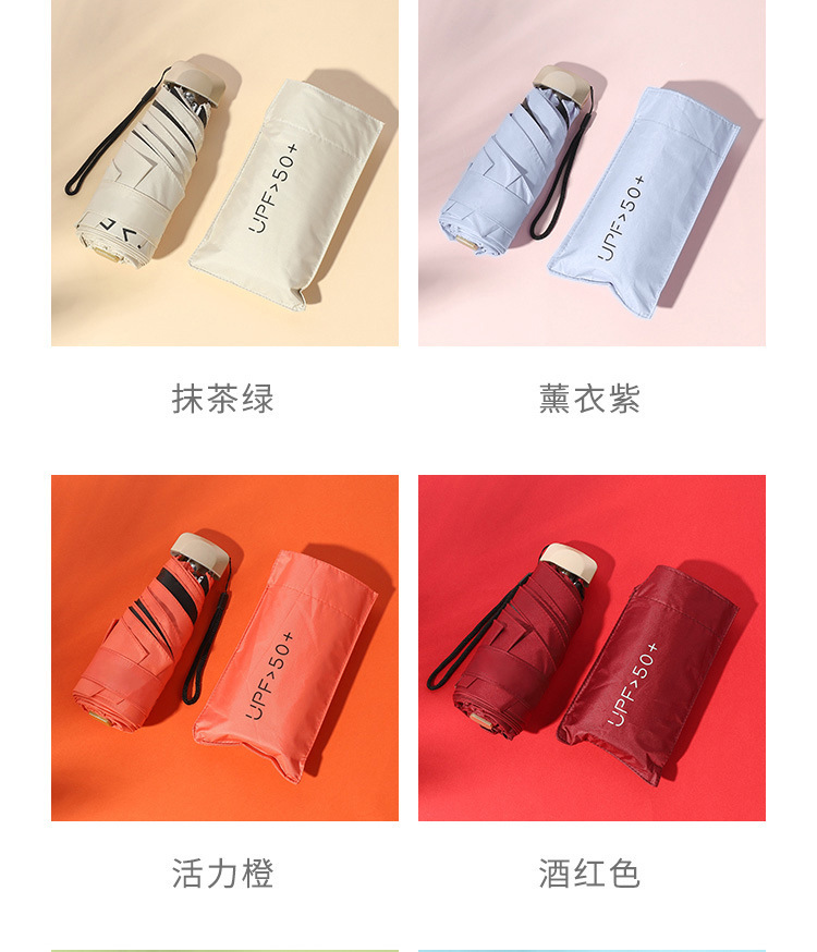 迷你遮阳伞扁六折手动防晒便携太阳伞高颜值晴雨伞折叠两用小巧