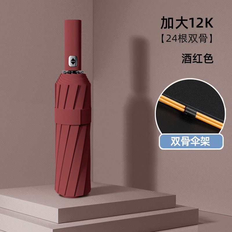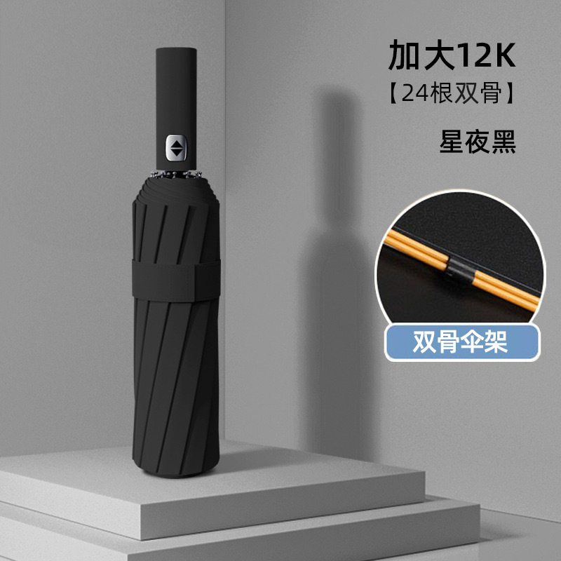 十二骨全自动折叠太阳伞大量批发加大晴雨伞两用黑胶防晒遮阳伞男