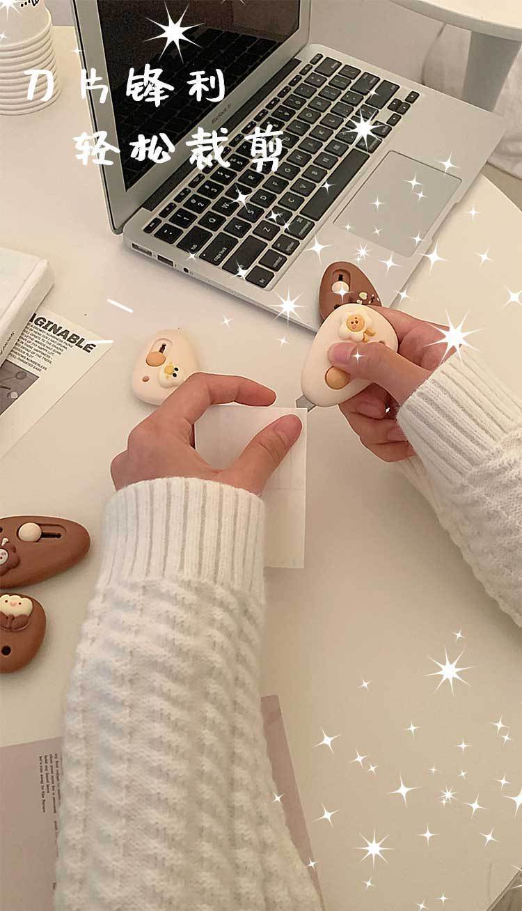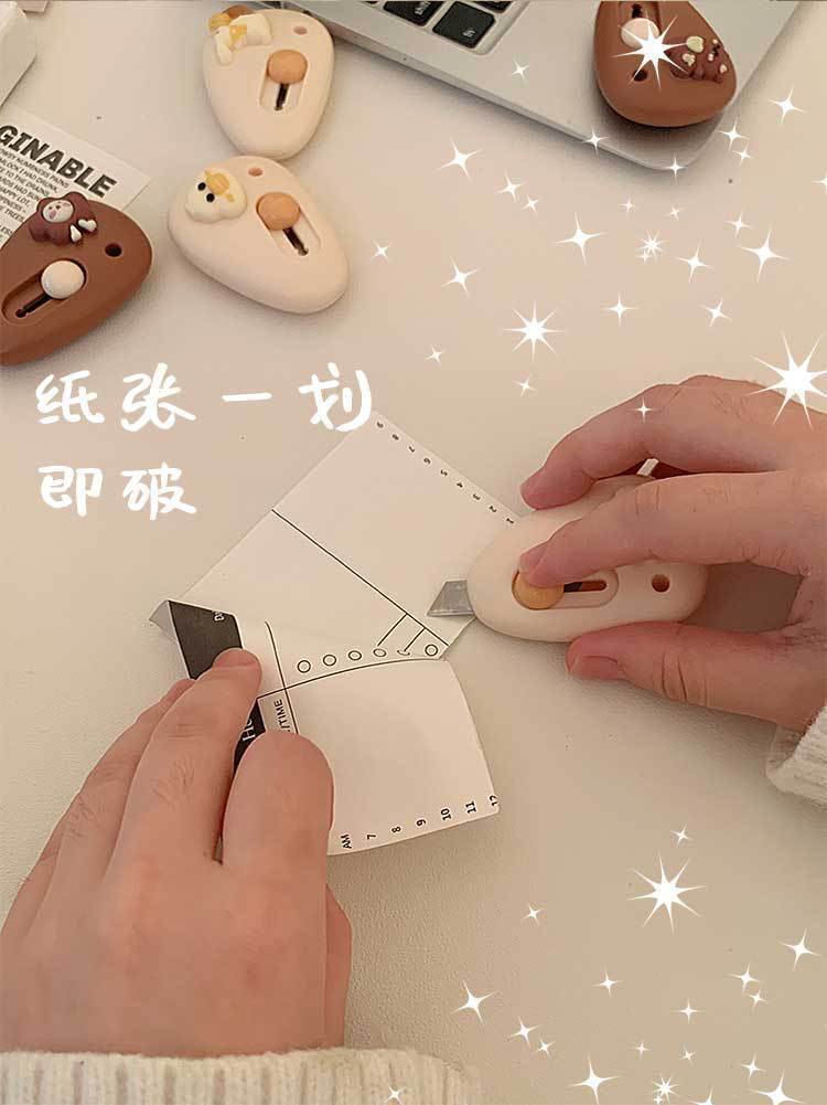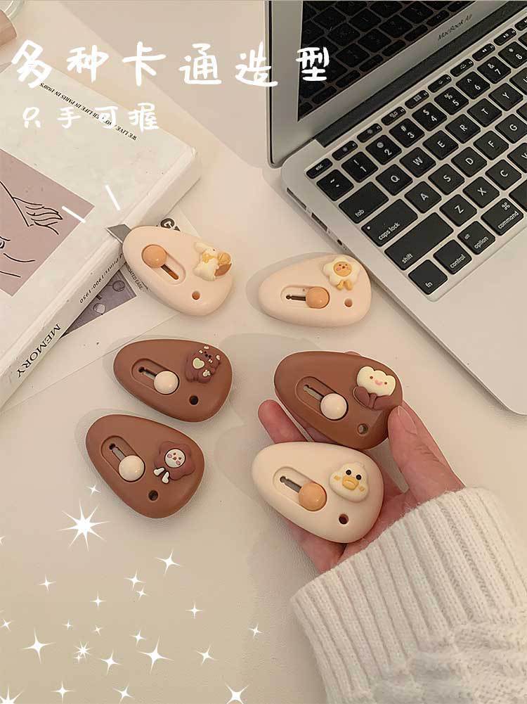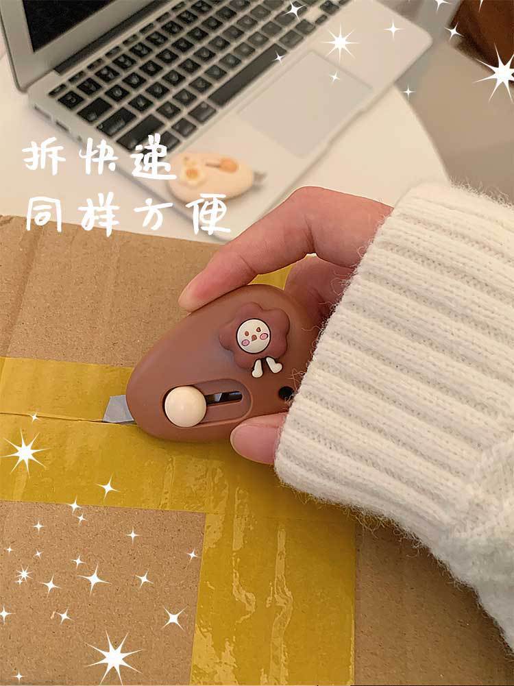 拆快递小刀家用迷你便携开箱自动回弹学生办公拆信裁纸卡通美工刀
