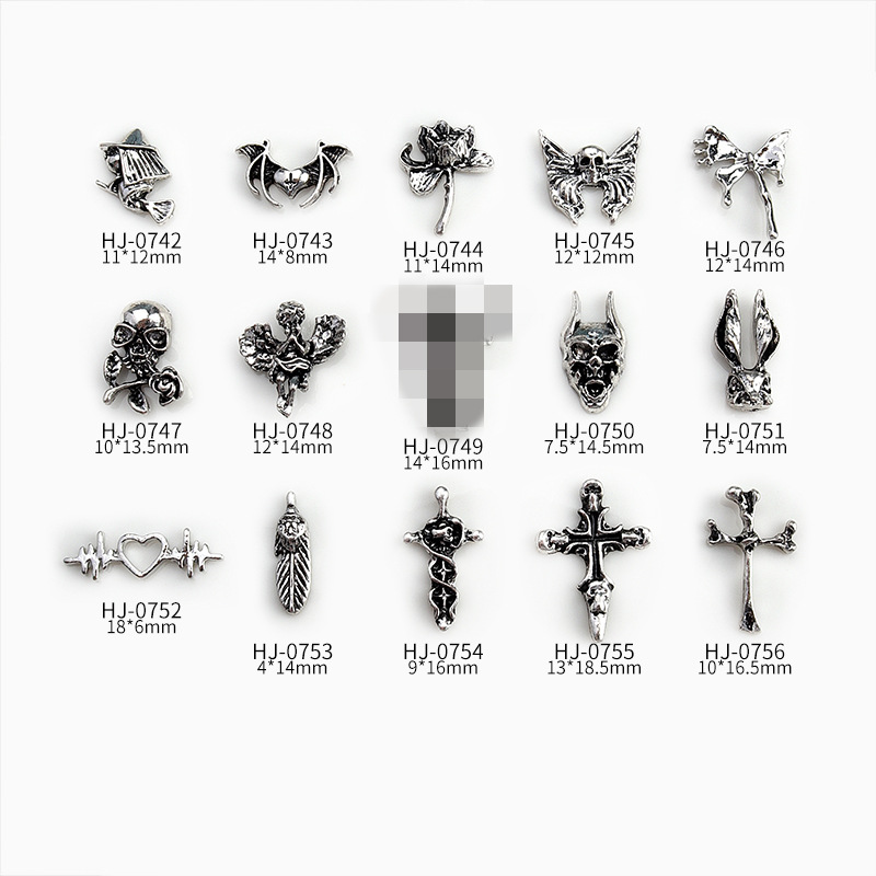 新款复古美甲克罗心饰品欧美暗黑机甲十字架许愿天使万圣钻饰批发