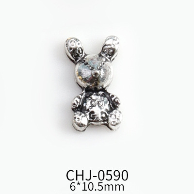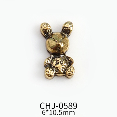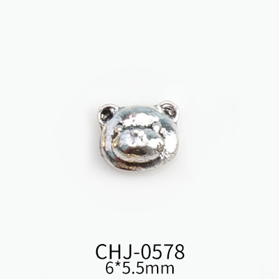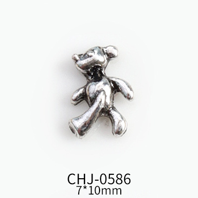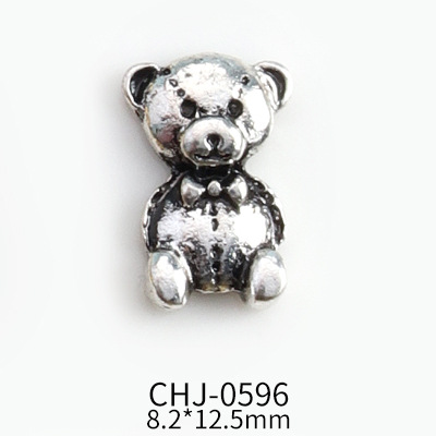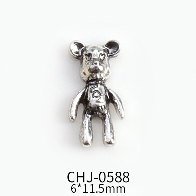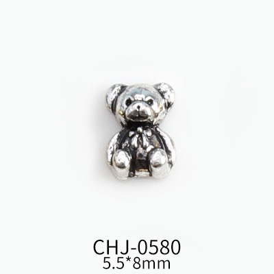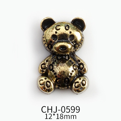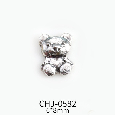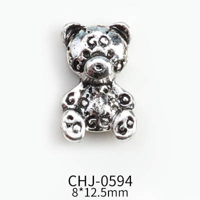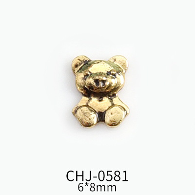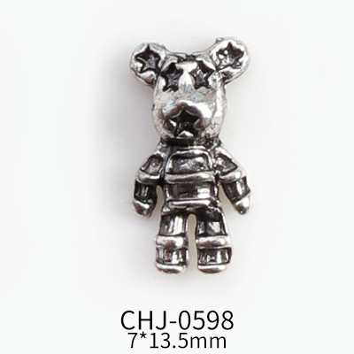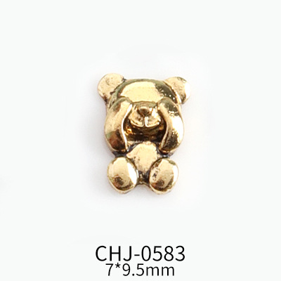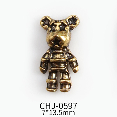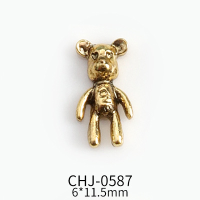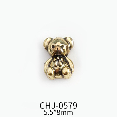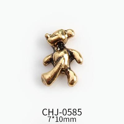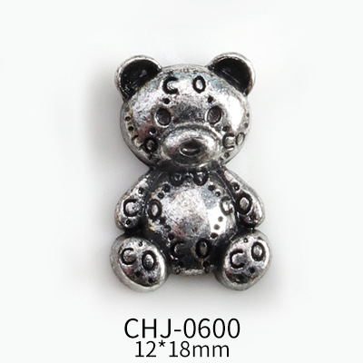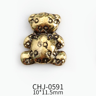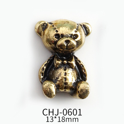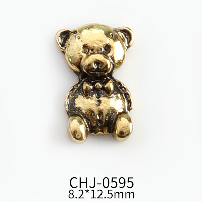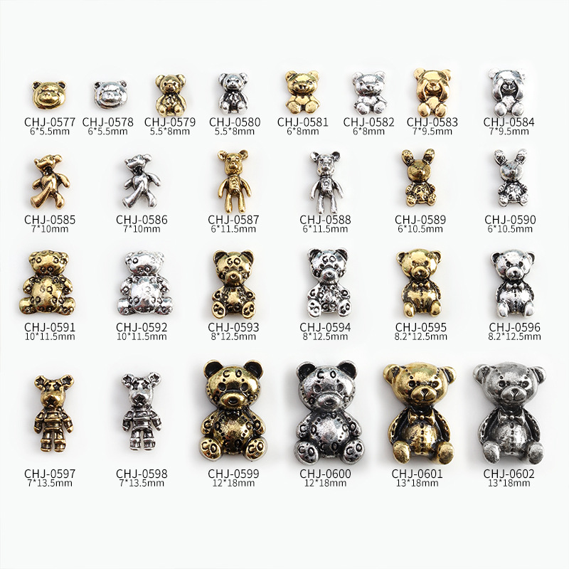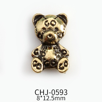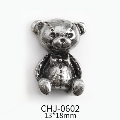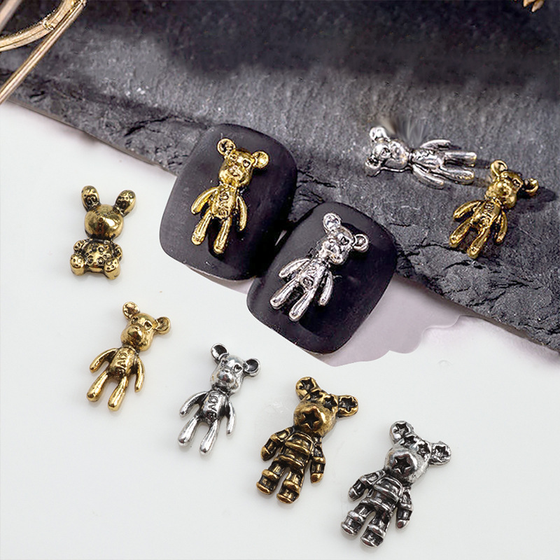 新款美甲复古金属饰品可爱大小暴力熊简约风合金美甲钻饰厂家直销