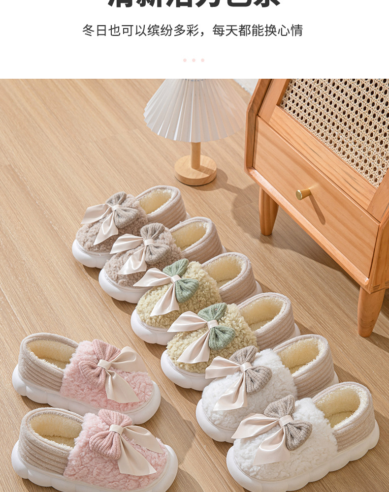 蝴蝶结包跟棉拖鞋女秋冬季室内居家居保暖加绒家用毛棉鞋女外穿
