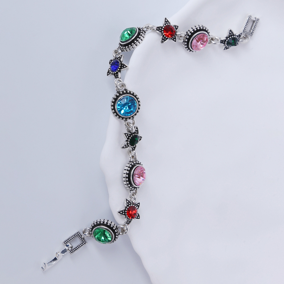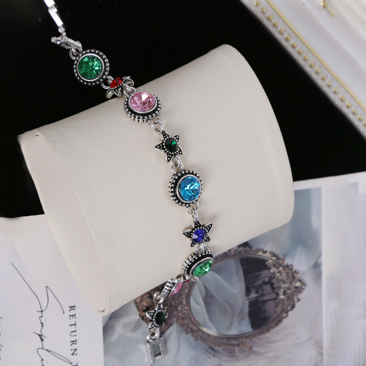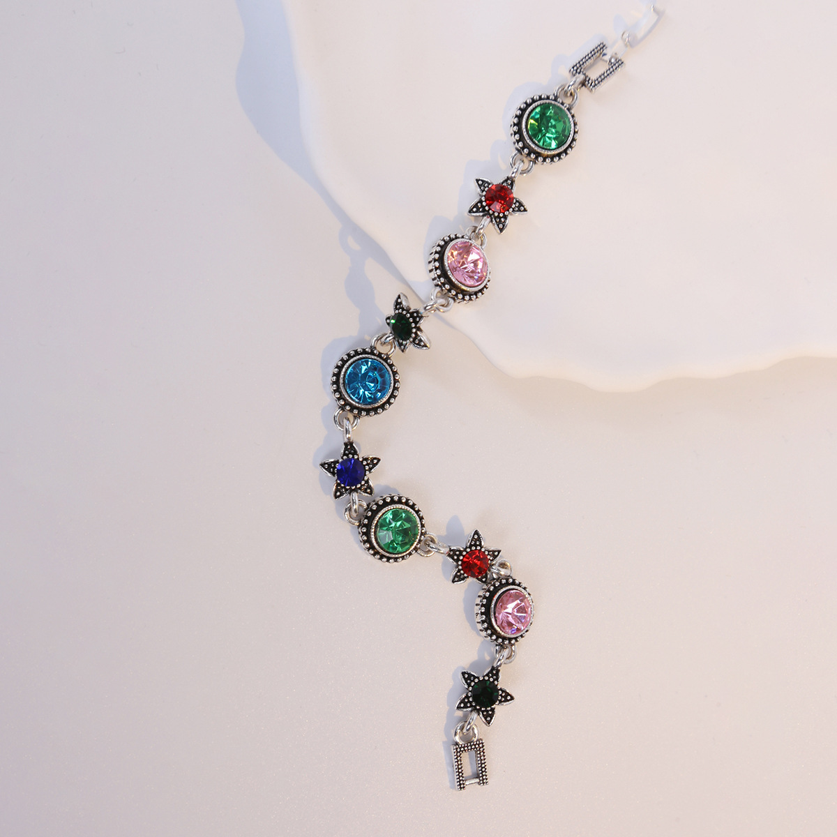 跨境新款小众百搭星星镶钻手饰 复古民族风几何圆形彩色微镶手链
