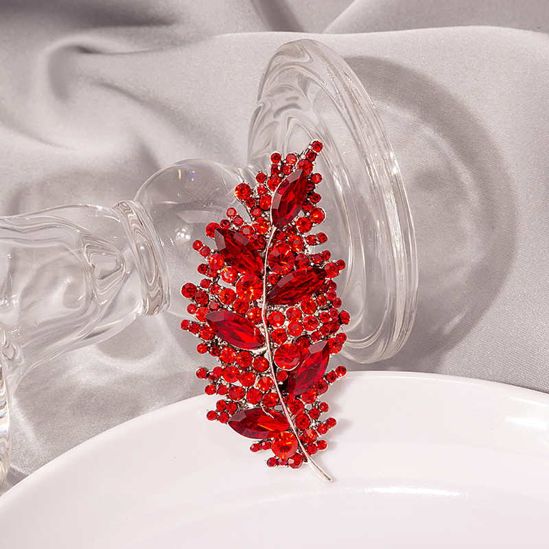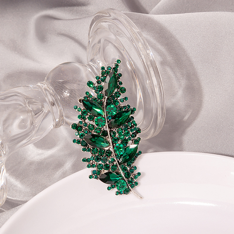 韩版时尚新品创意镶钻树叶胸针超闪水钻镂空时髦简约女别针饰品