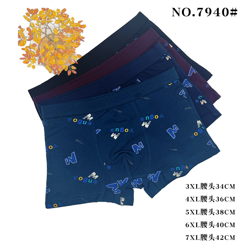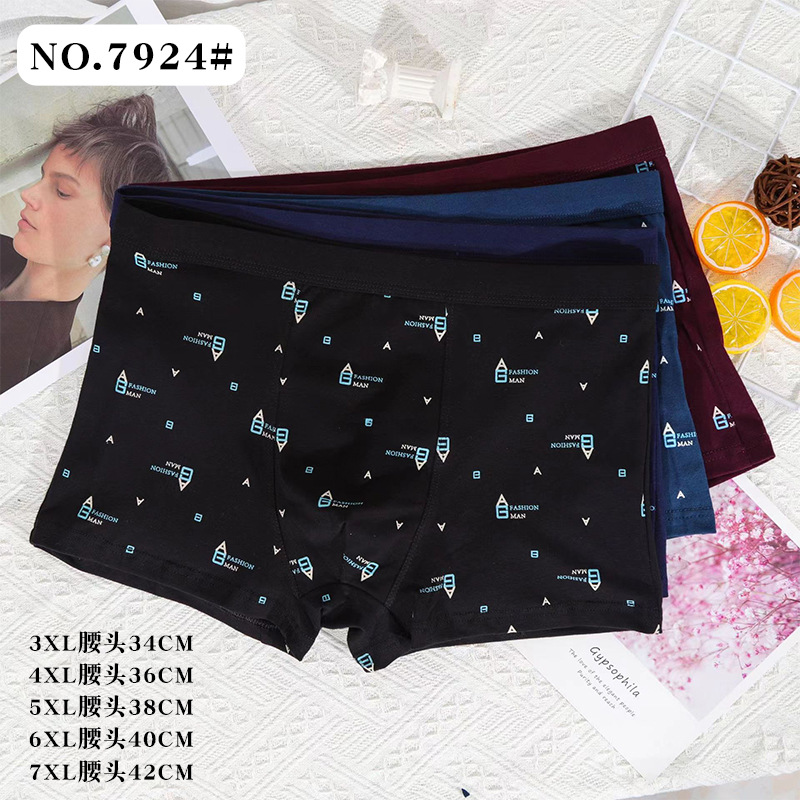 1男士纯棉平角内裤系列 纯色中腰印花四角裤男玫瑰公子2组