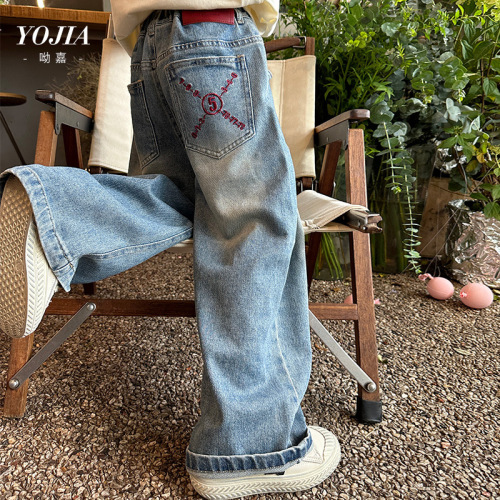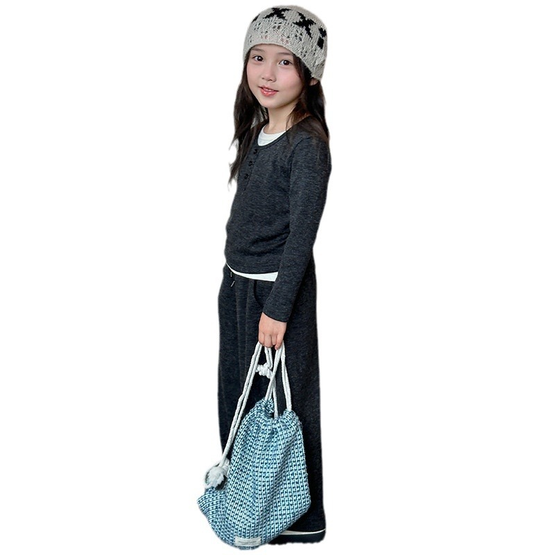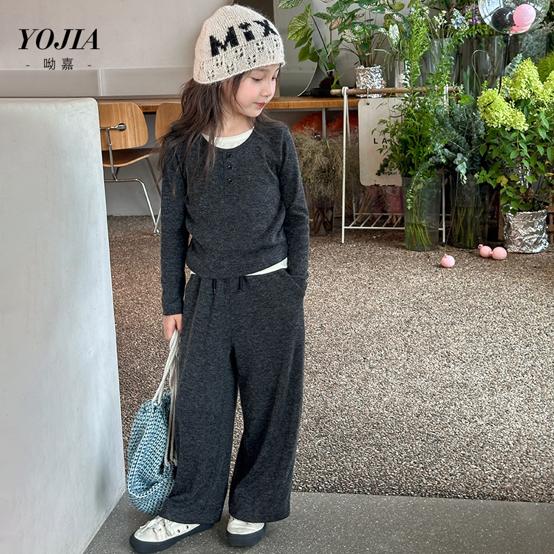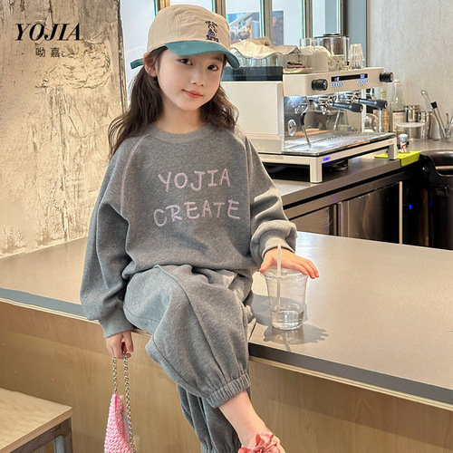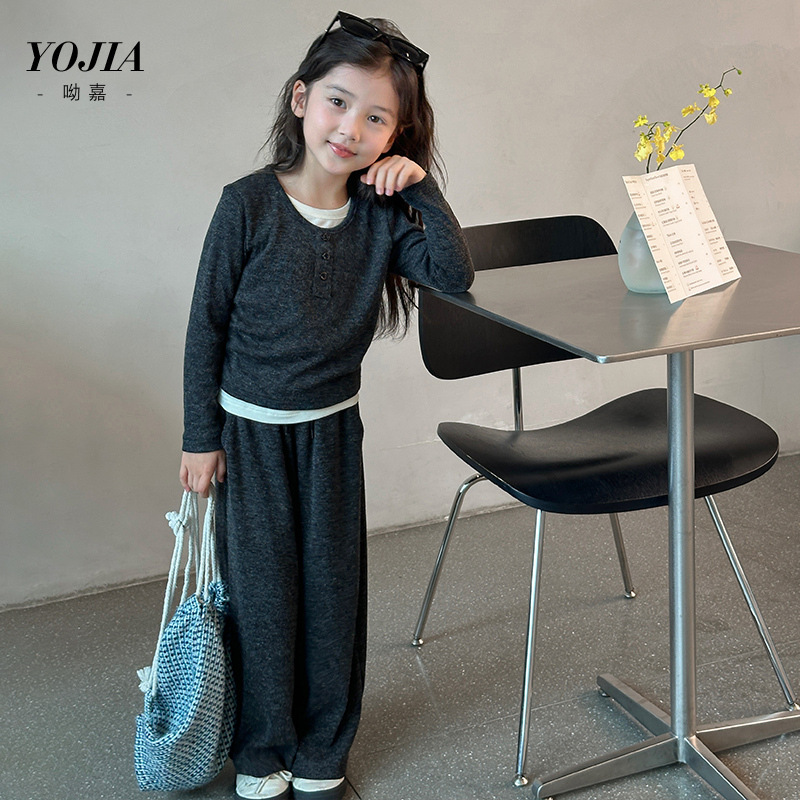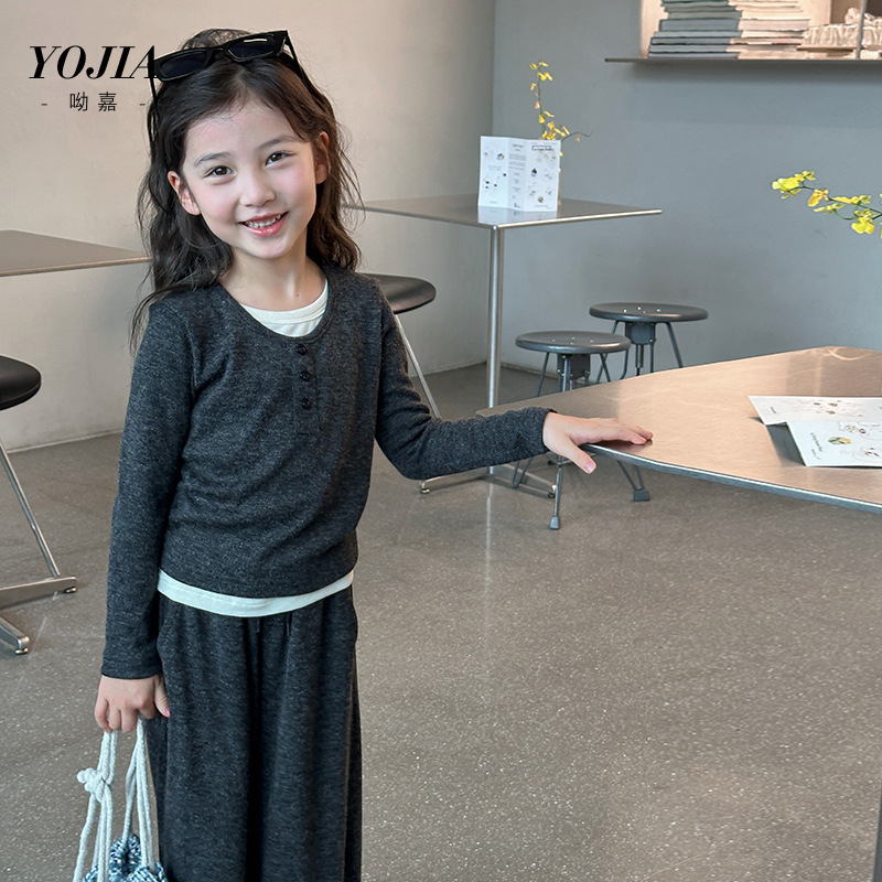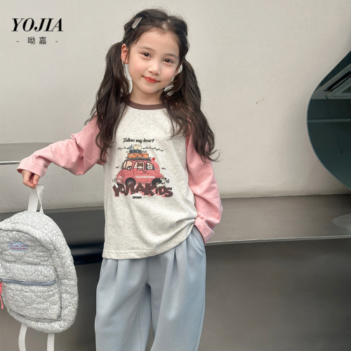 YOJIA女童套装春秋2024新款秋季时髦小女孩童装内搭儿童假两件套