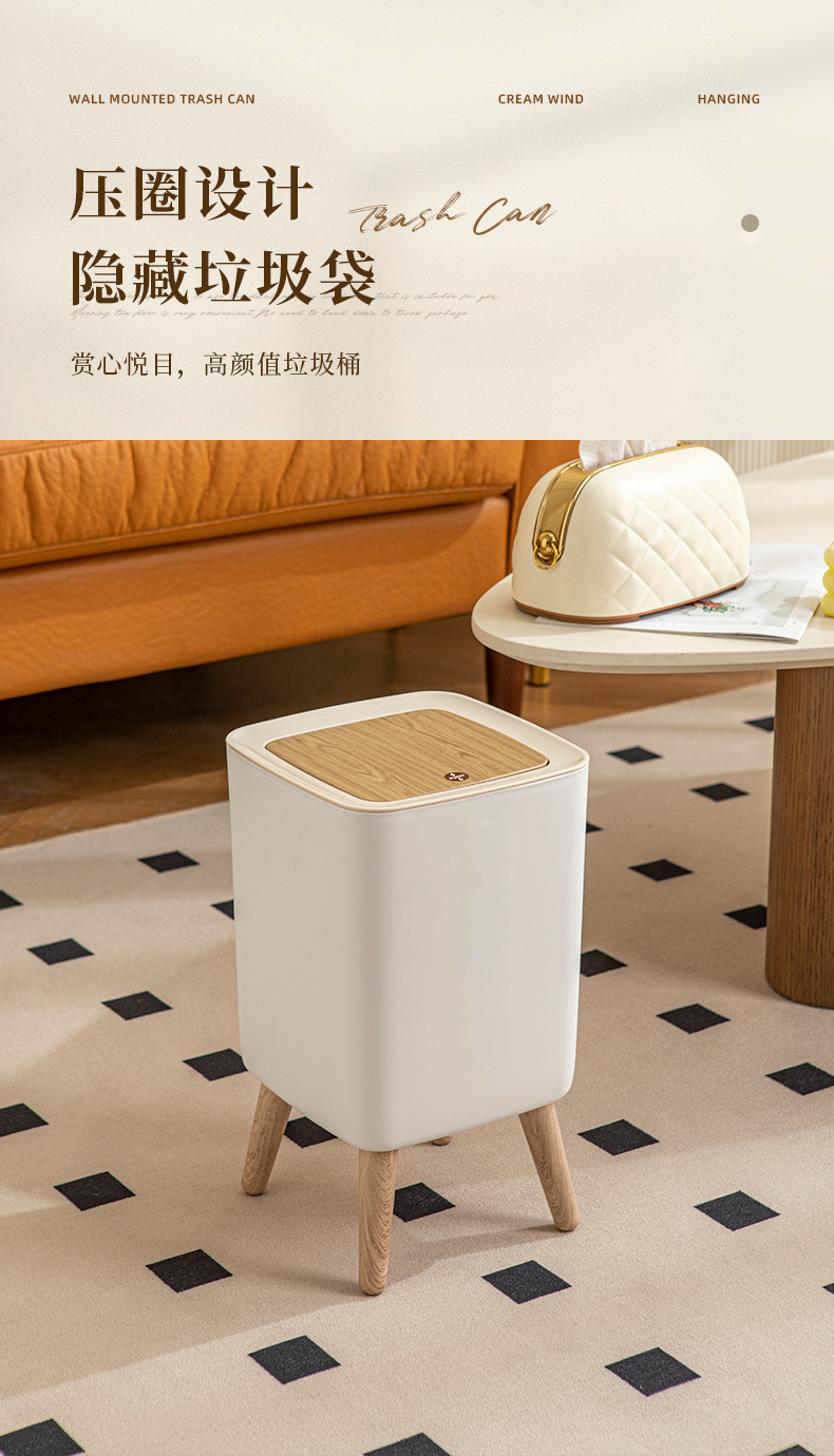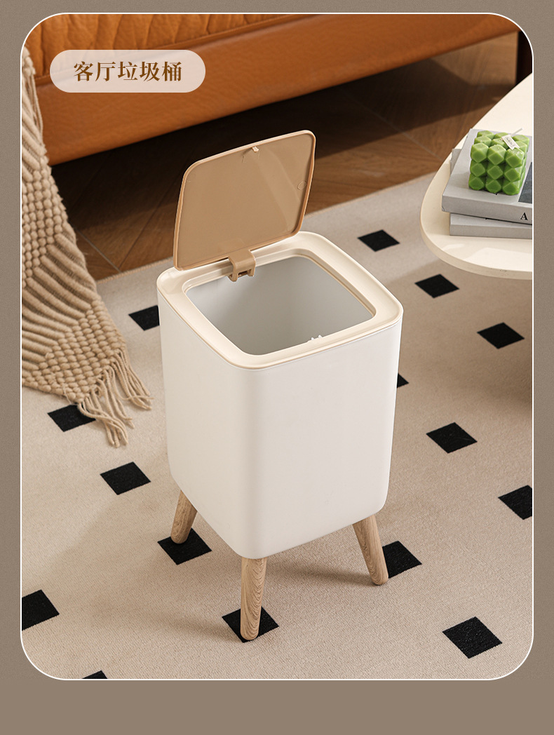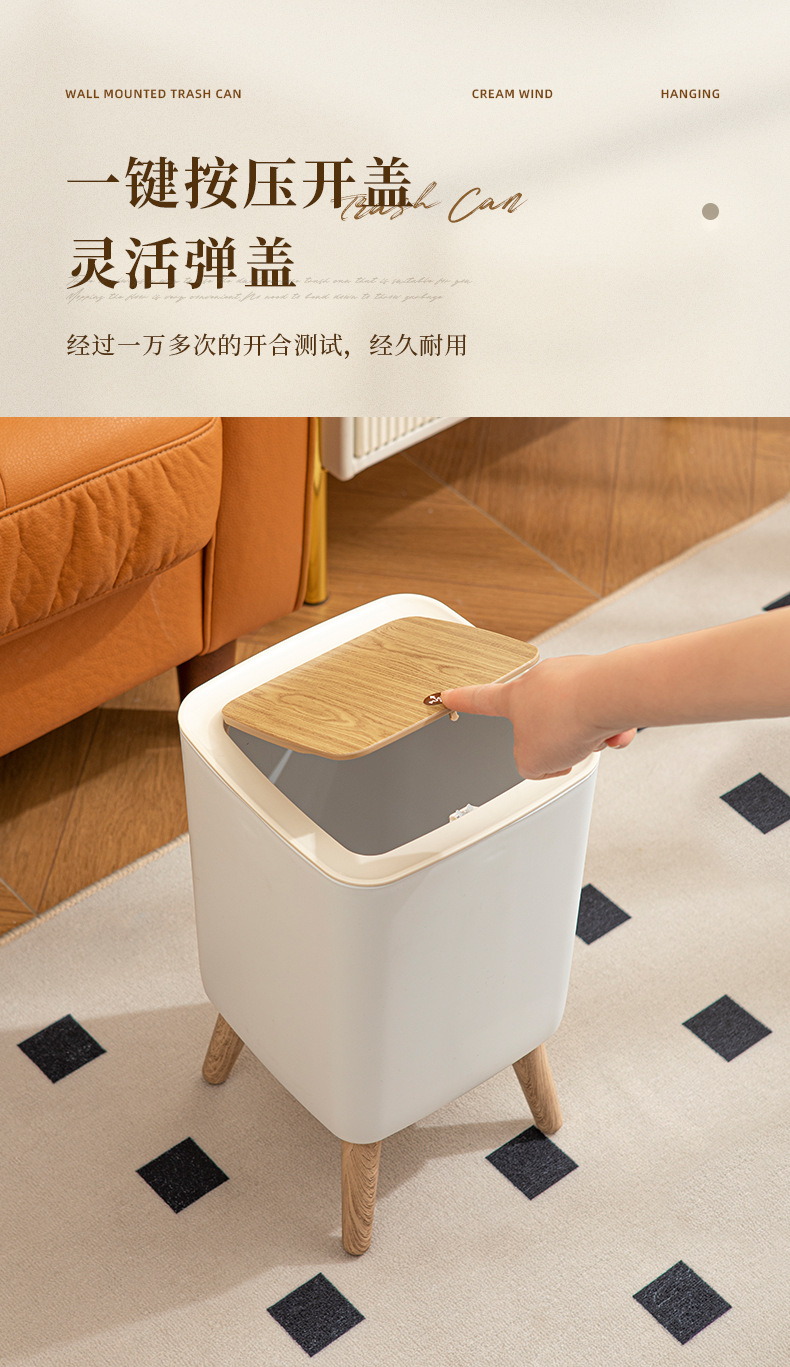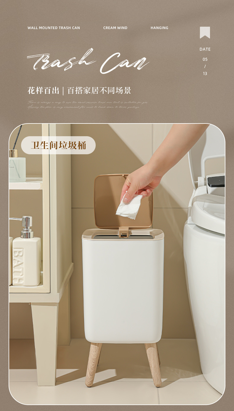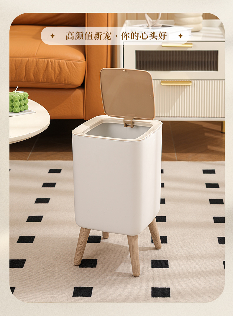 方形光板脚垃圾桶家用卫生间厨房大容量纸篓收纳桶高脚按压垃圾桶