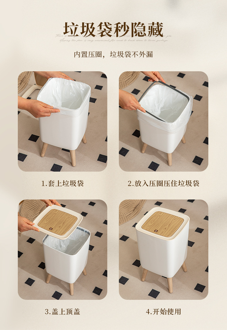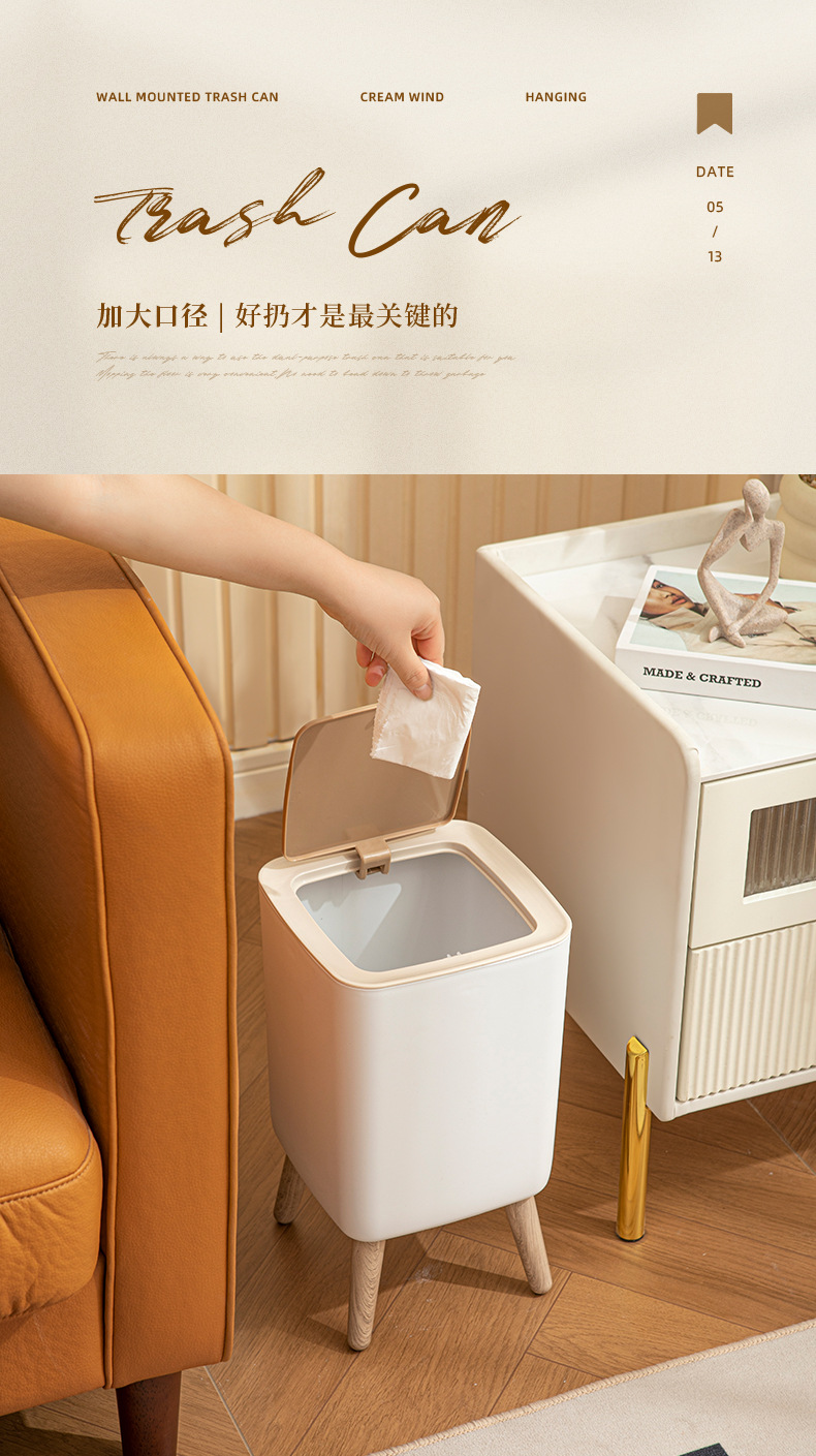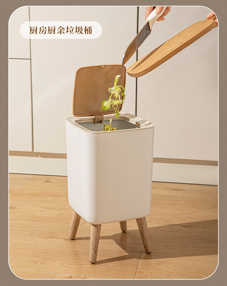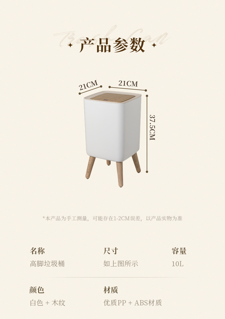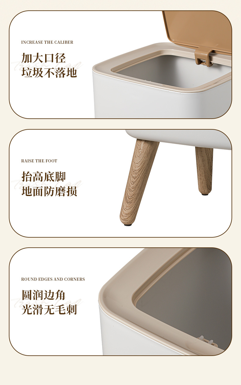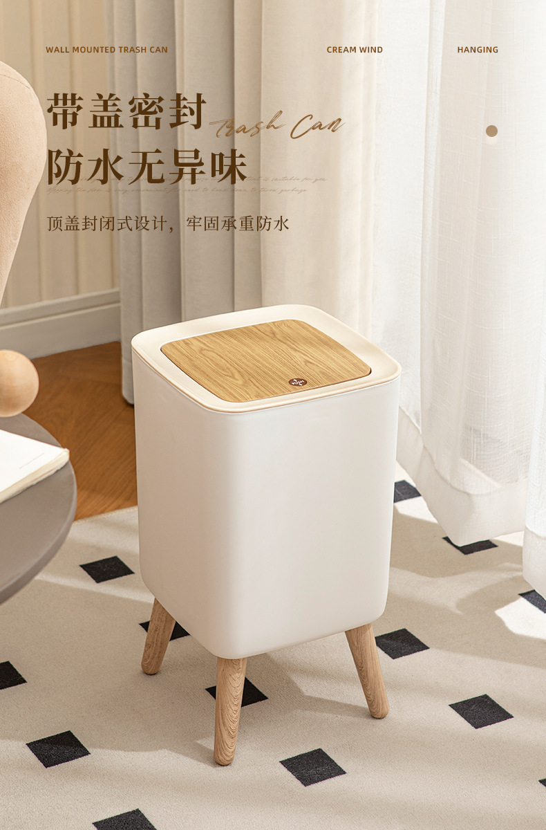 方形光板脚垃圾桶家用卫生间厨房大容量纸篓收纳桶高脚按压垃圾桶