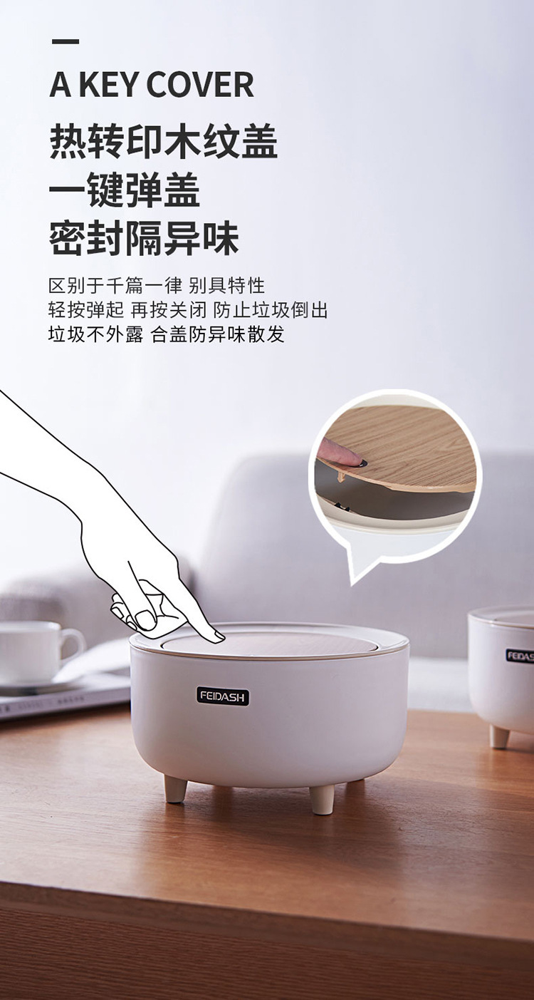 垃圾桶桌面按压式弹盖小垃圾桶仿木纹家用办公客厅迷你可爱纸篓