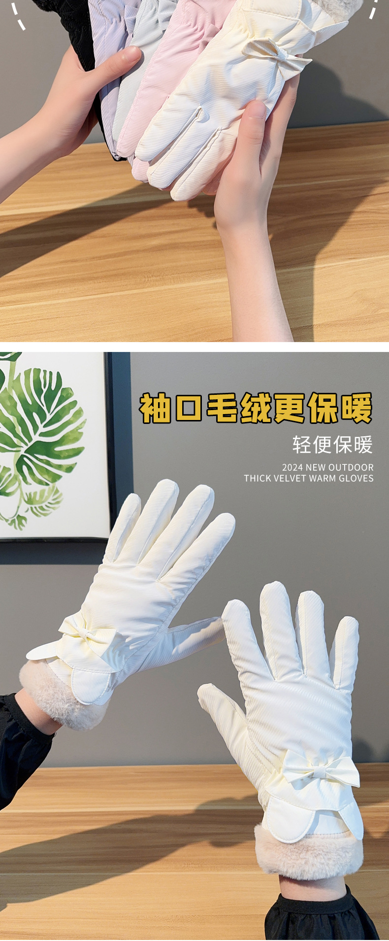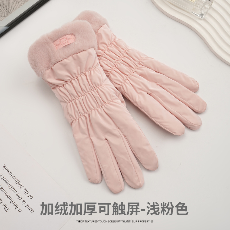 新款时尚简约秋冬保暖手套女加绒加厚可触屏防滑防水滑雪手套批发