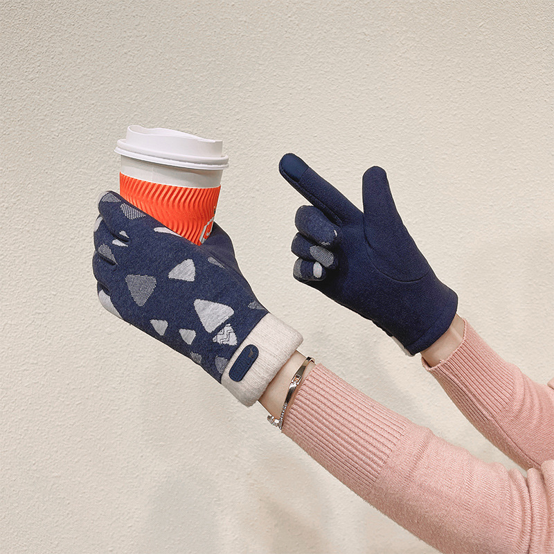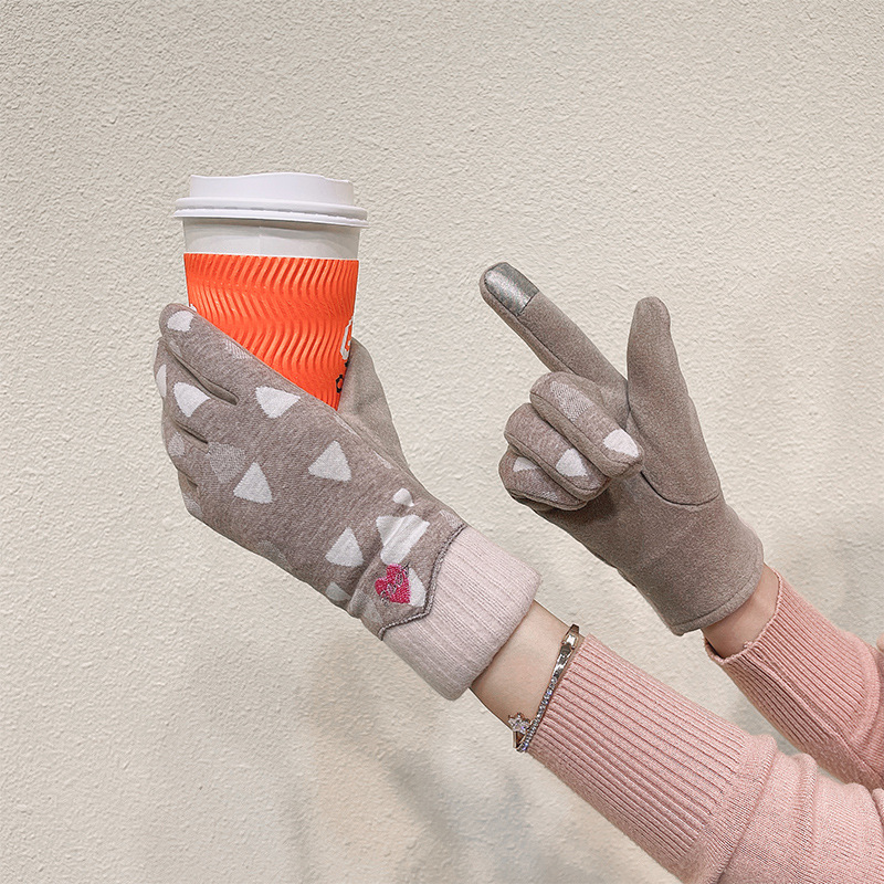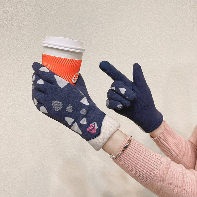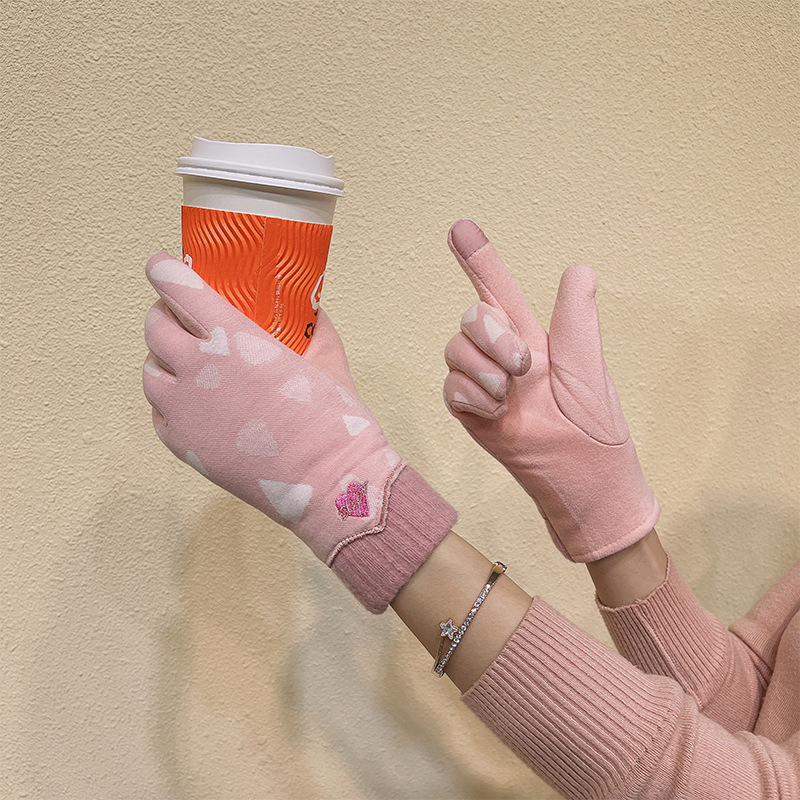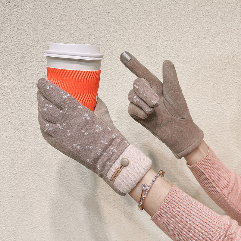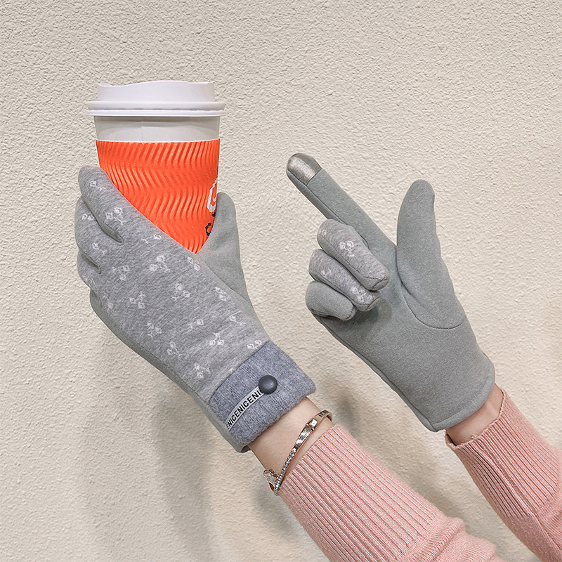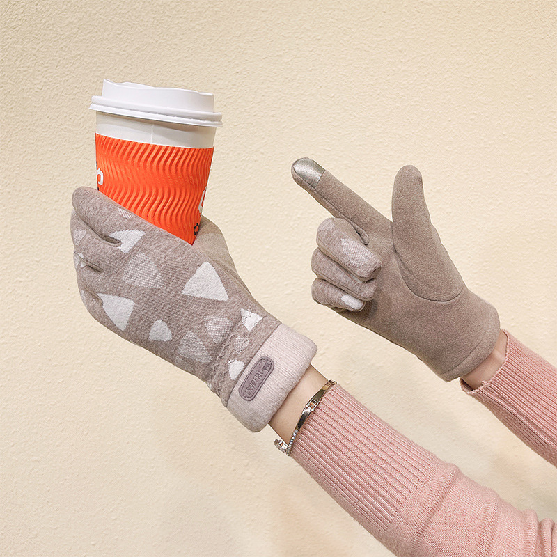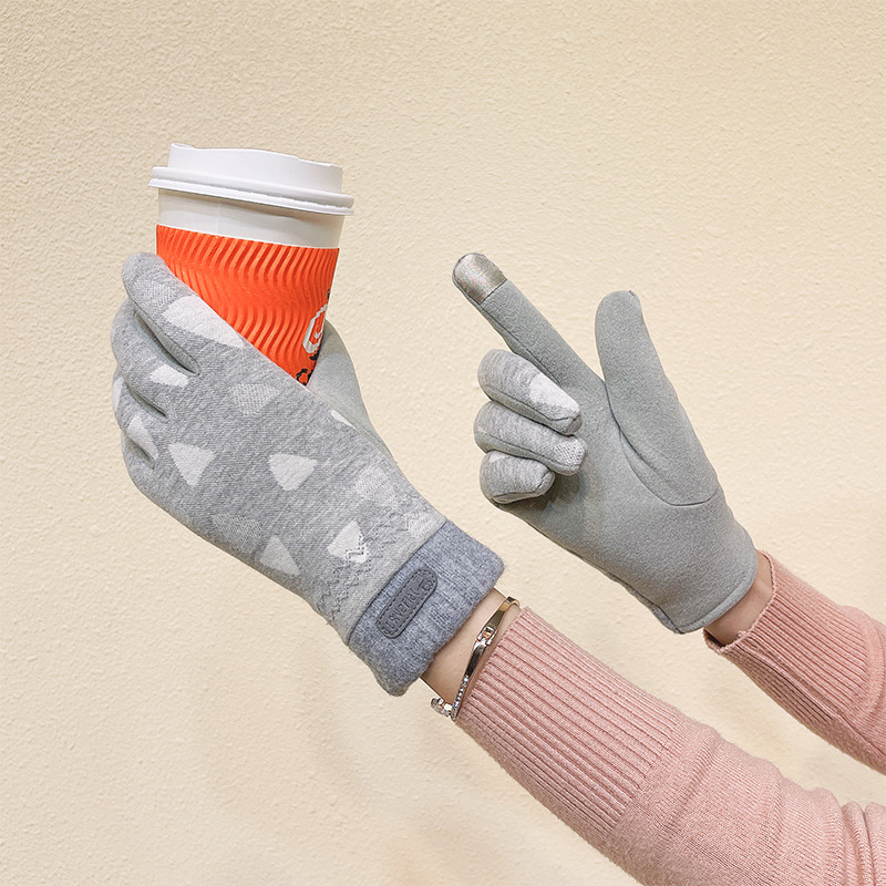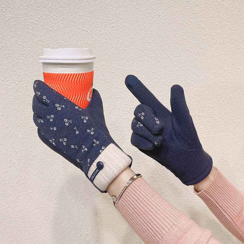 秋冬新款女士手套德绒加绒加厚保暖分指骑行触屏简约时尚运动手套