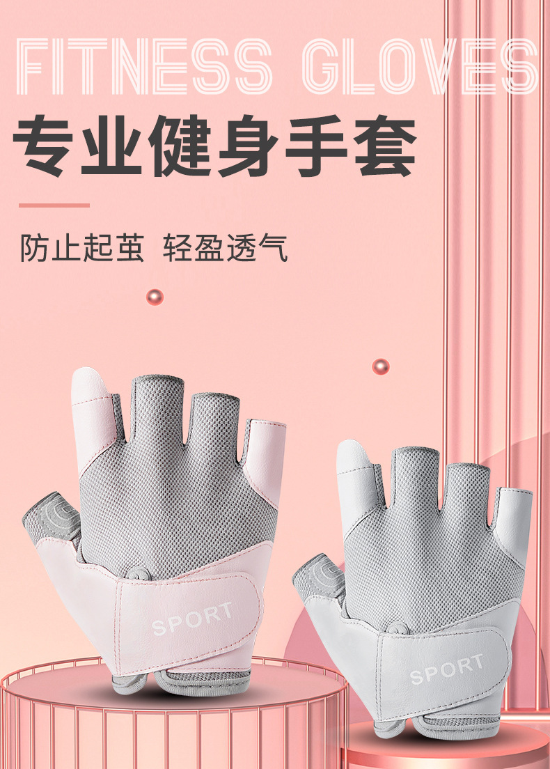 新款运动健身手套女力量锻炼防滑透气耐磨护手腕半指骑行手套批发