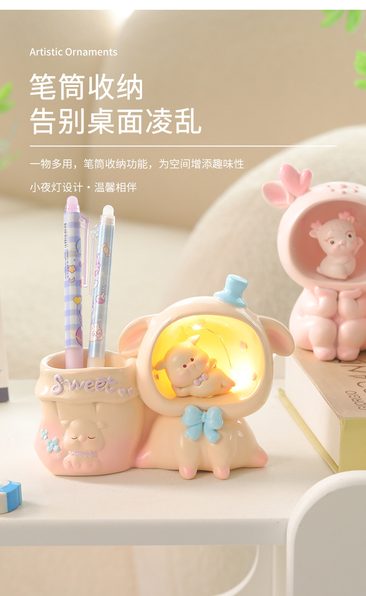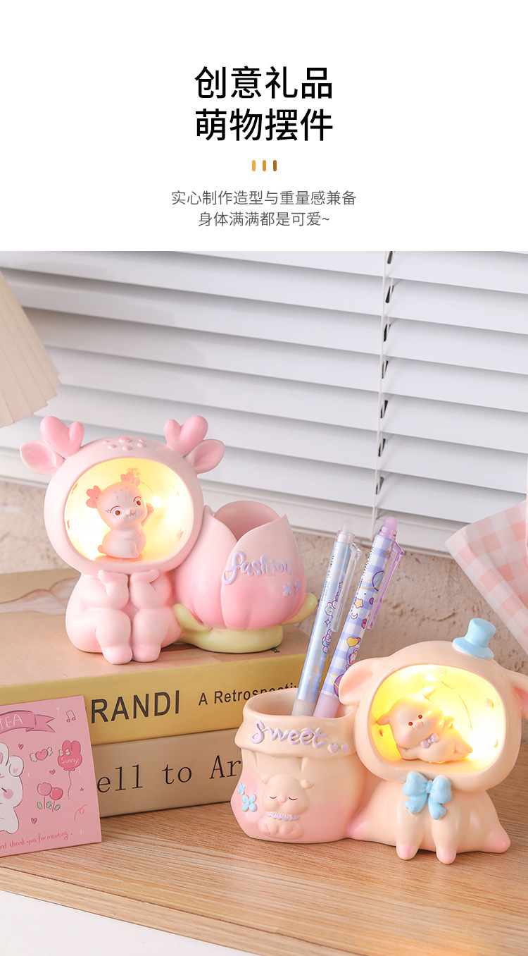DIY 小夜灯笔筒可爱收纳创意学生礼物礼品文具儿童桌面办公室摆件
