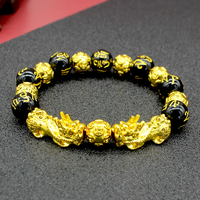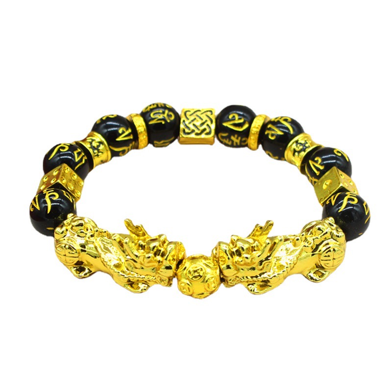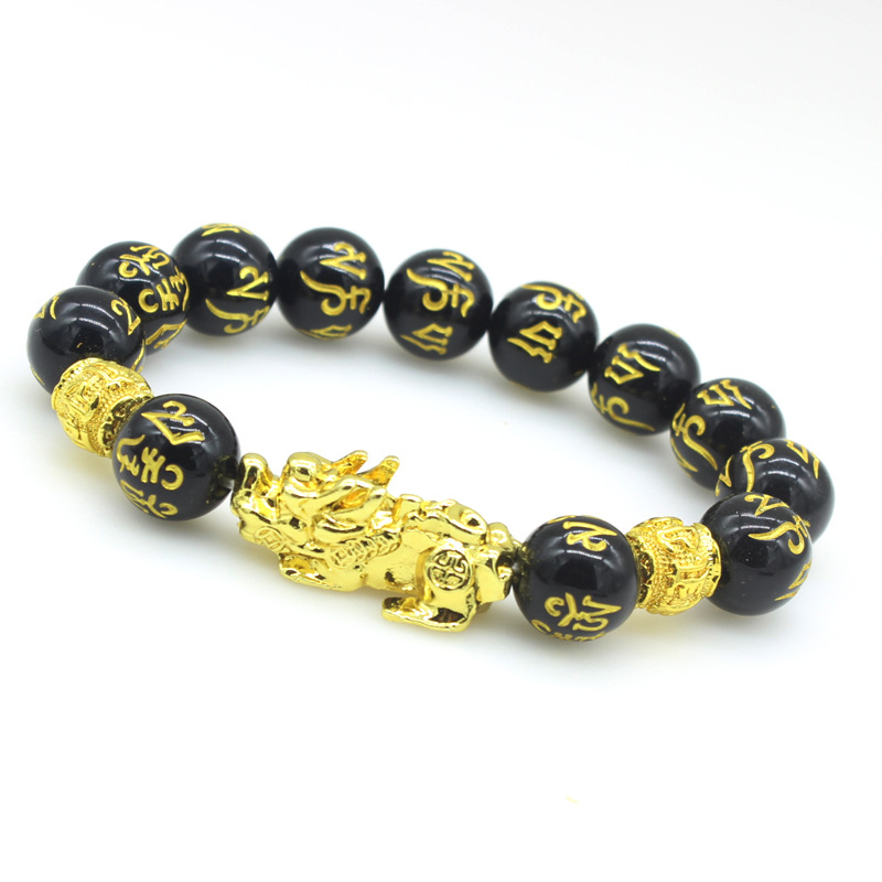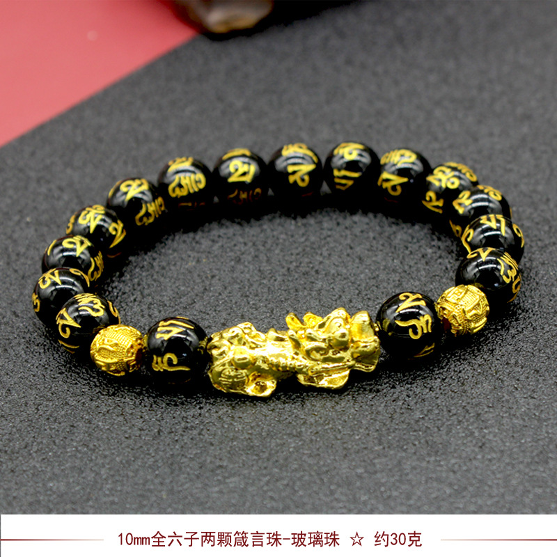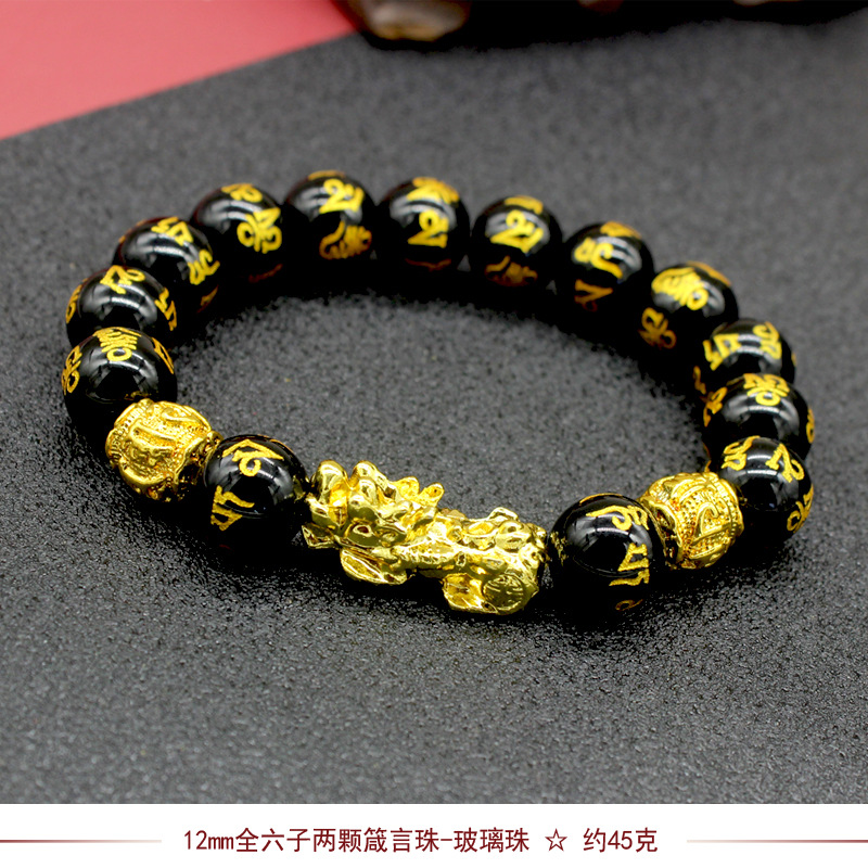 仿黑曜石镀金貔貅手链男女款六字箴言佛珠手串跨境饰品厂家批发