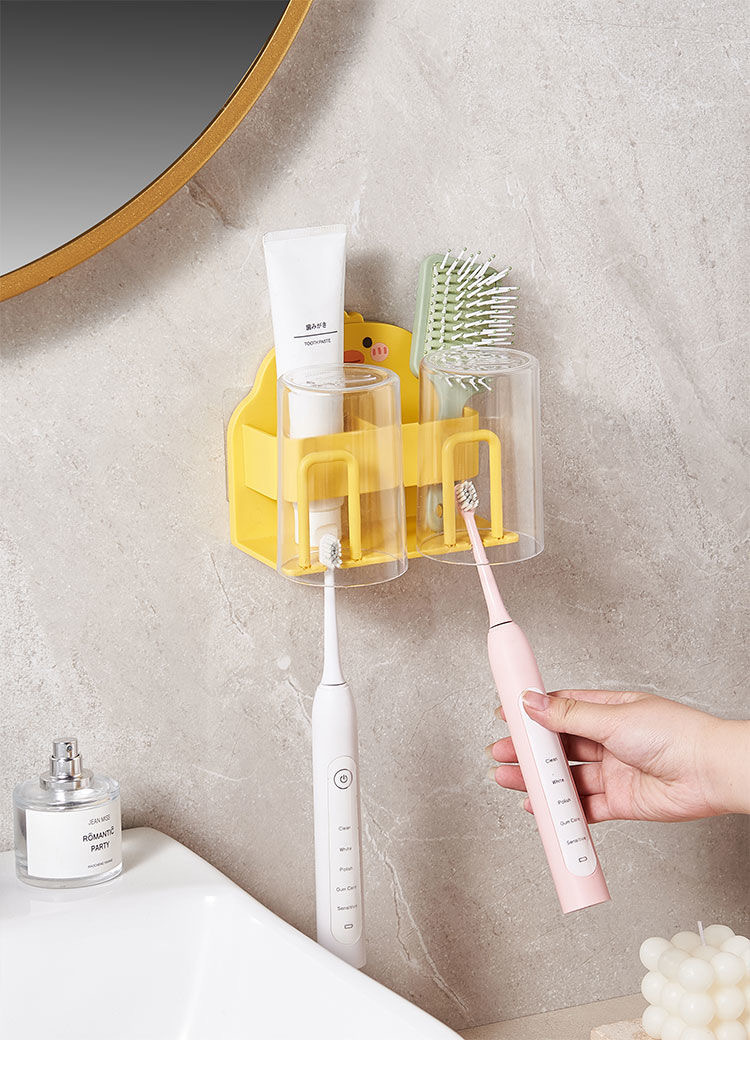 牙刷置物架架子杯子牙膏漱口杯免打孔刷牙杯牙缸壁挂式卫生间电动