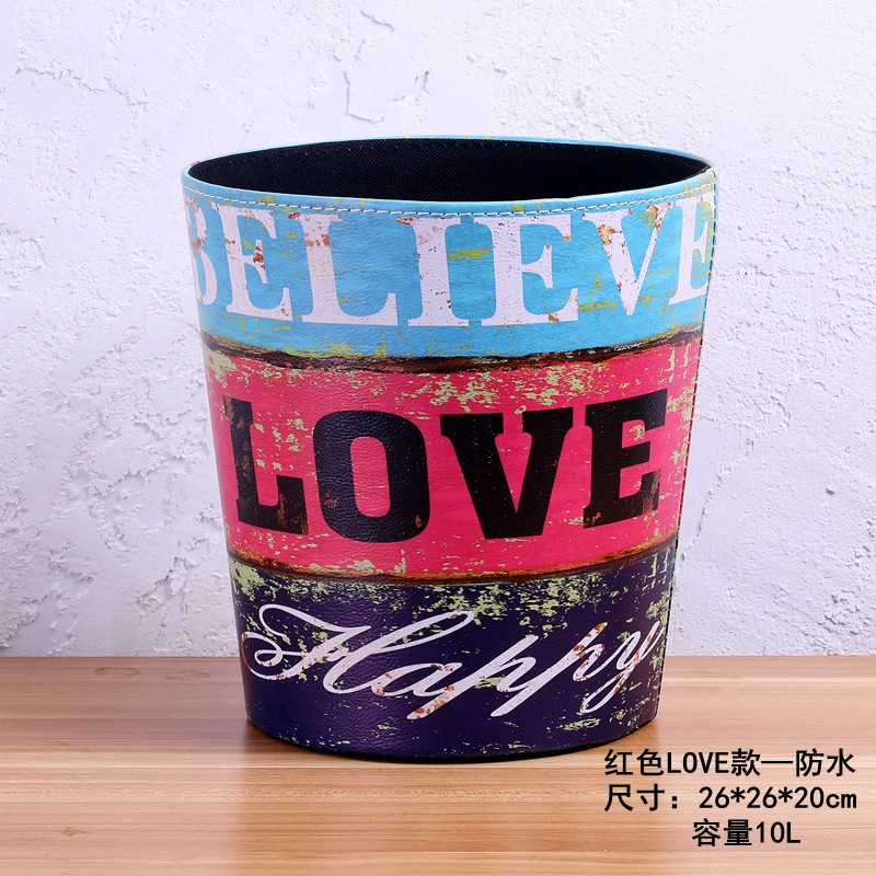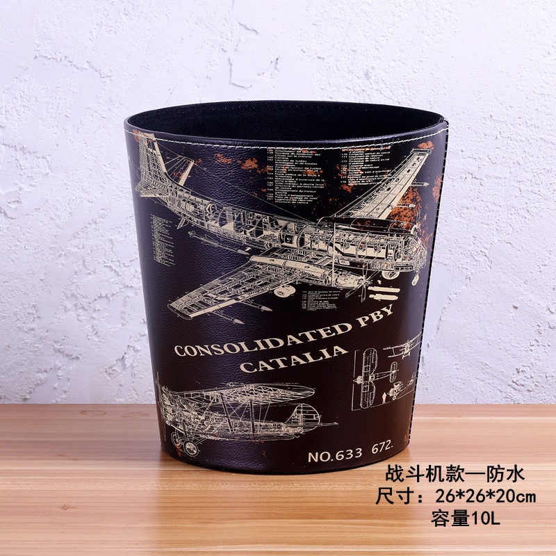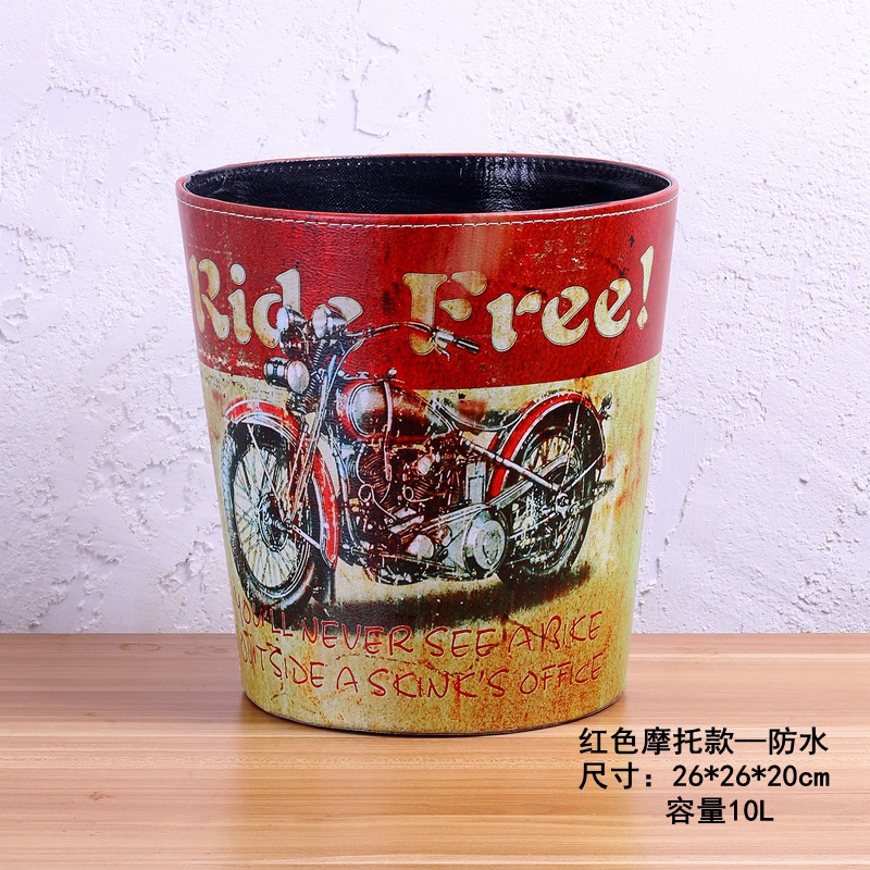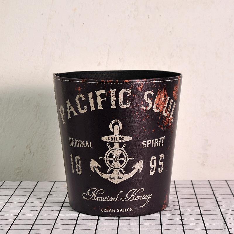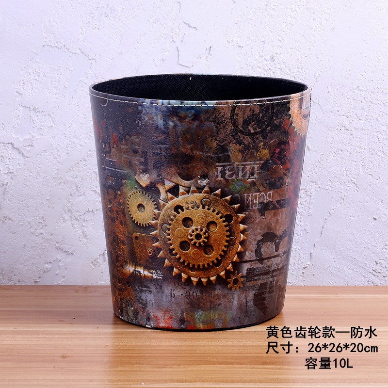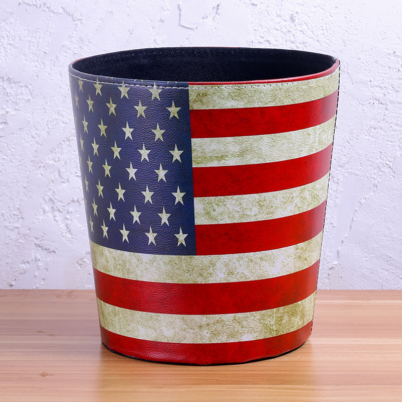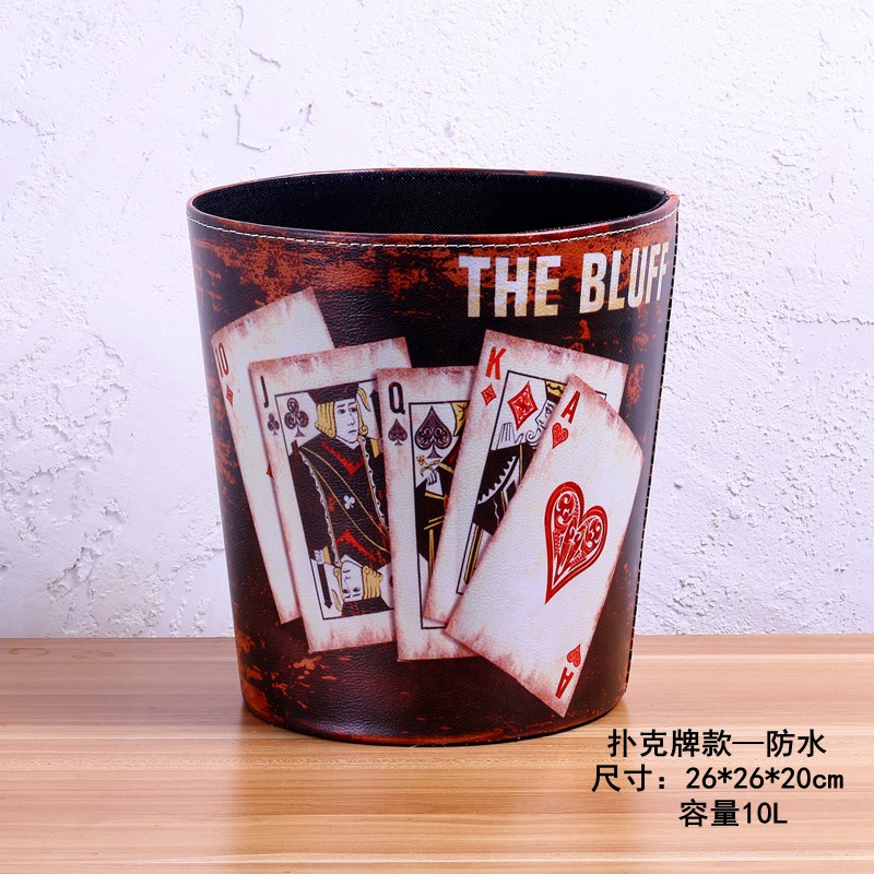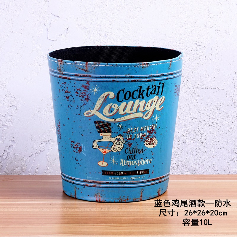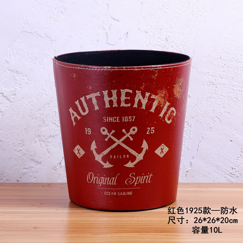 美式垃圾桶家用大号垃圾桶 客厅创意皮质垃圾桶酒吧无盖垃圾桶