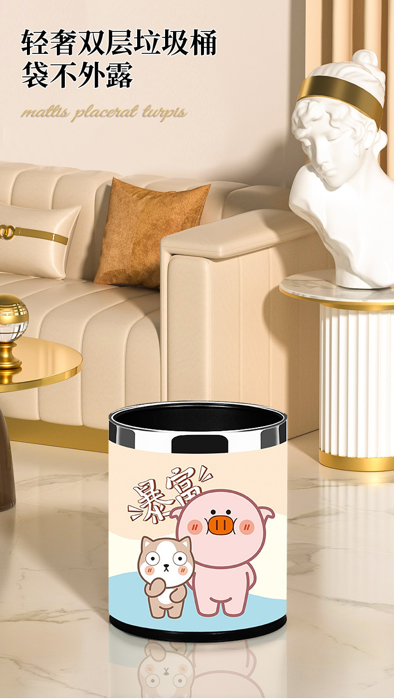 比鲁斯客厅垃圾桶家用卧室大容量纸篓创意可爱颜值儿童玩具收纳桶