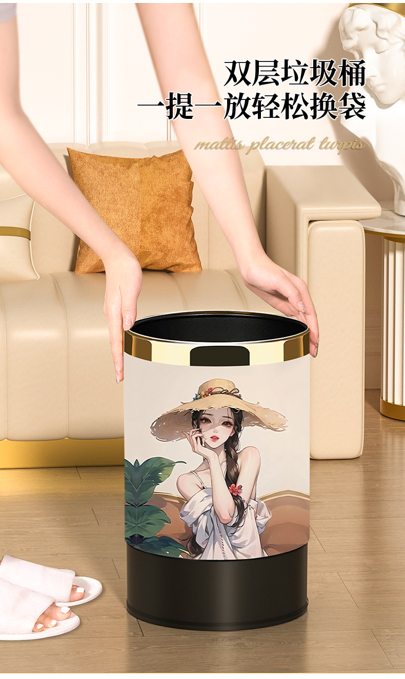 垃圾桶家用客厅轻奢大容量高颜值无盖放纸桶厕所卫生间创意废纸桶