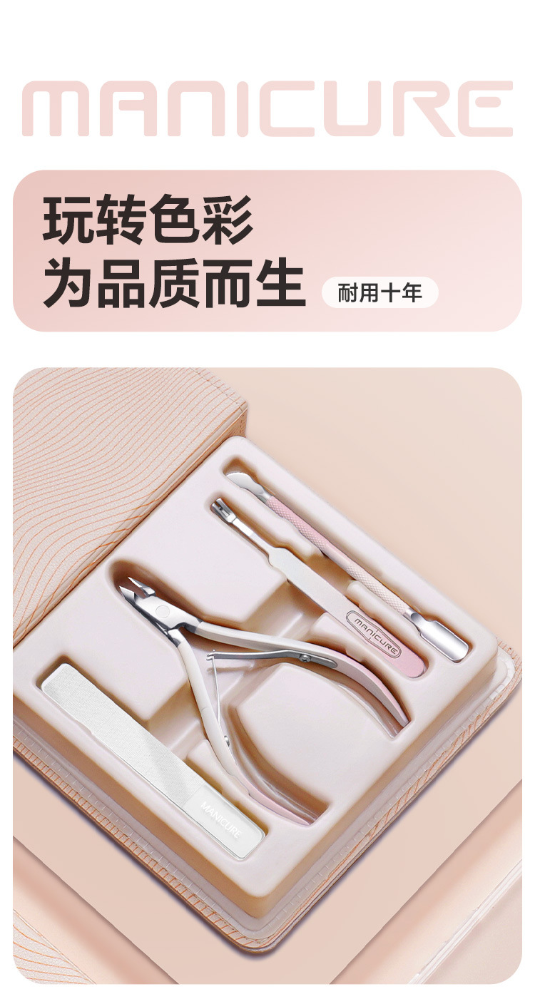 D501渐变色系不锈钢死皮剪美甲套装去死皮清理甲垢修甲套装