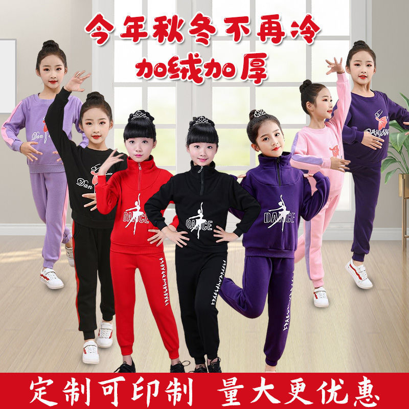 儿童舞蹈服女练功服秋冬款长袖套装中国舞加绒男童拉丁舞蹈服装女