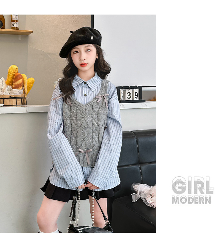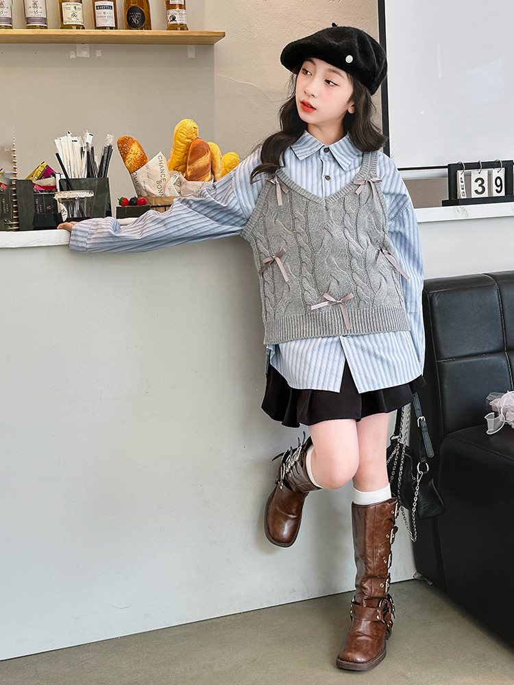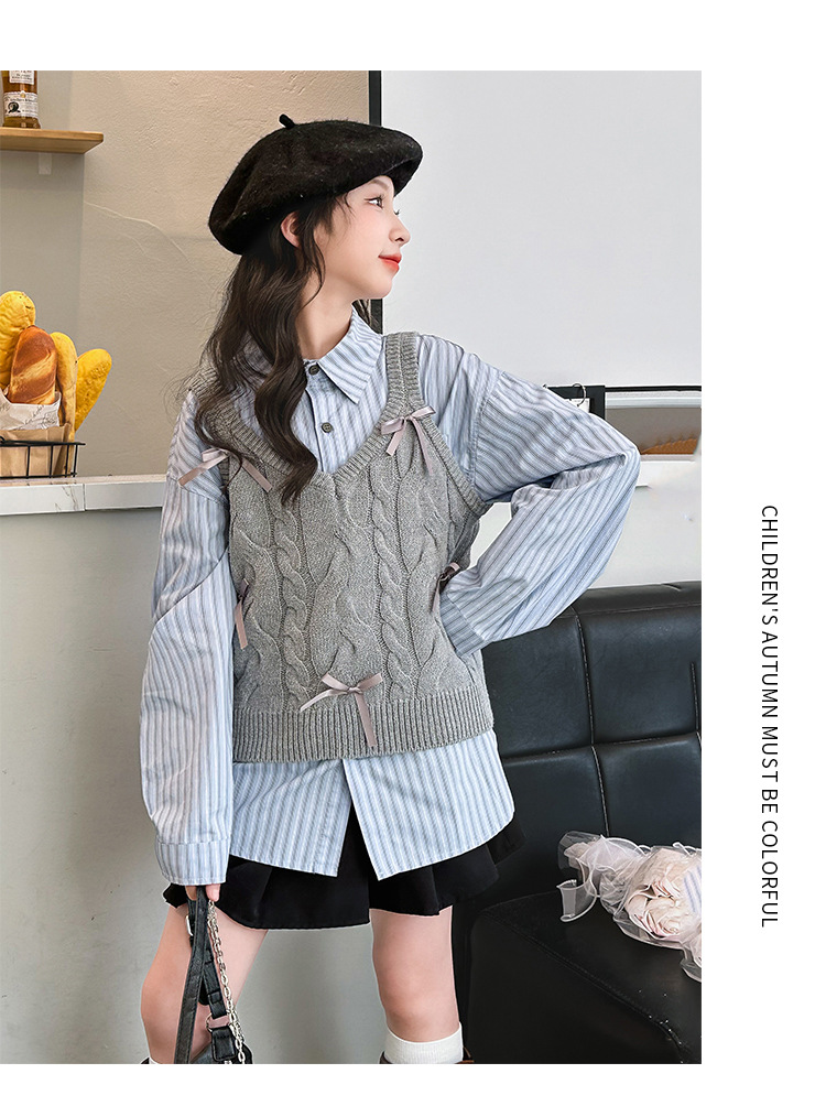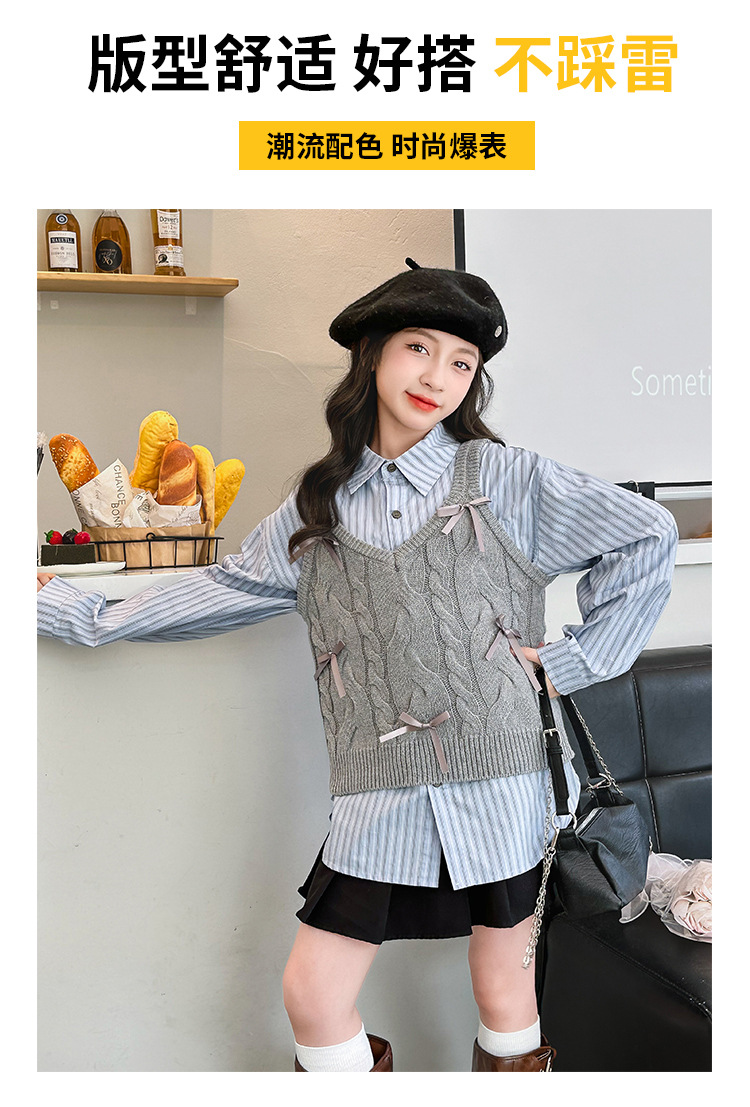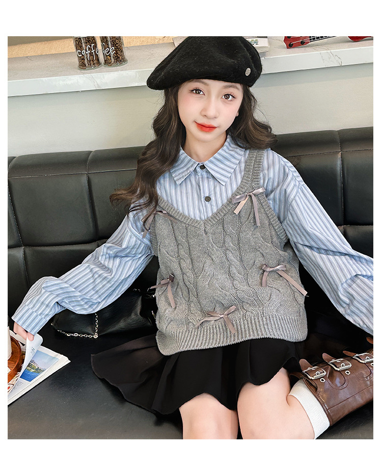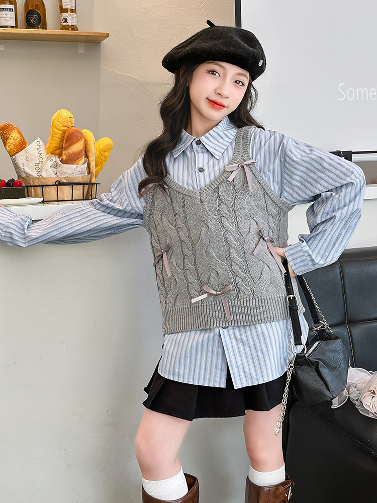 女童2024马甲短款毛线吊带小背心内搭叠穿韩系针织坎肩衬衫两件套