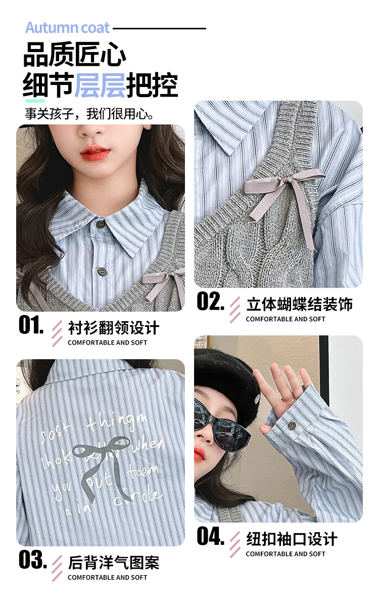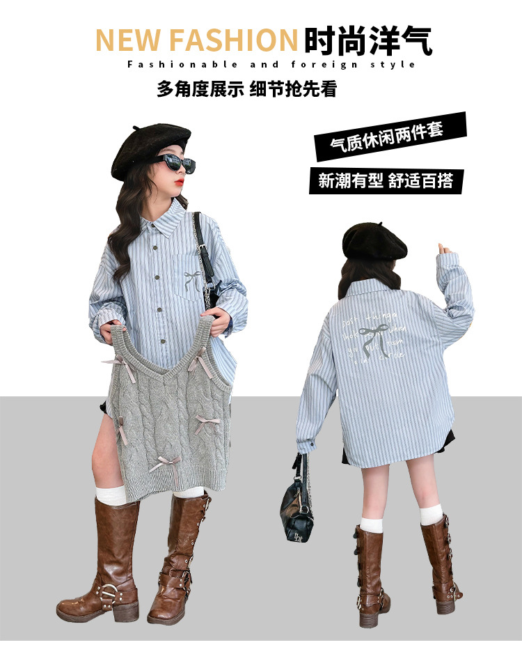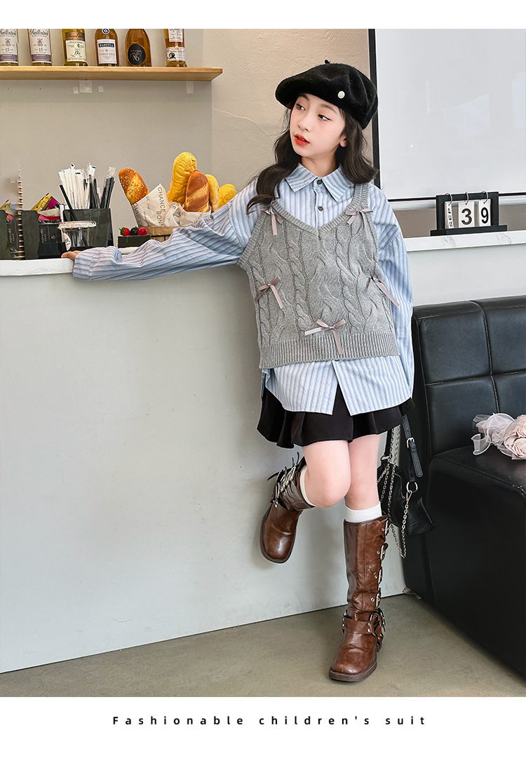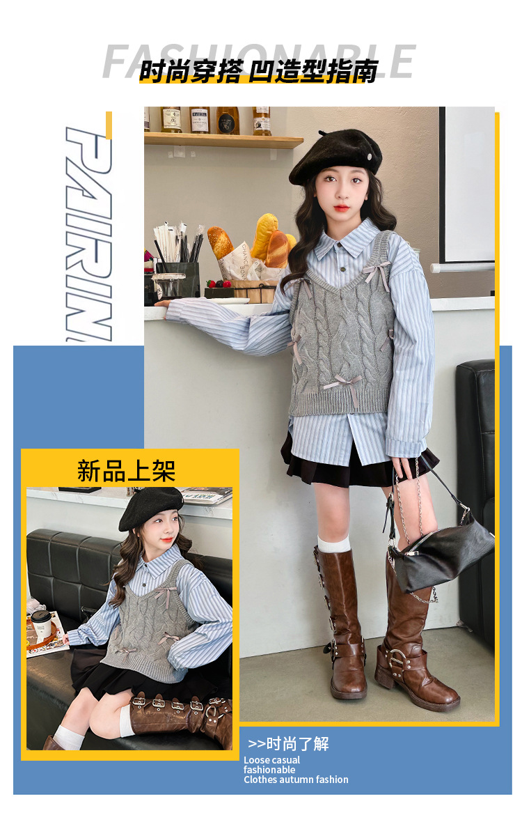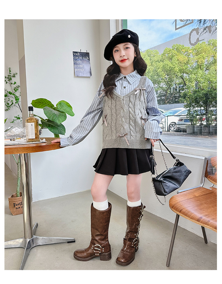 女童2024马甲短款毛线吊带小背心内搭叠穿韩系针织坎肩衬衫两件套