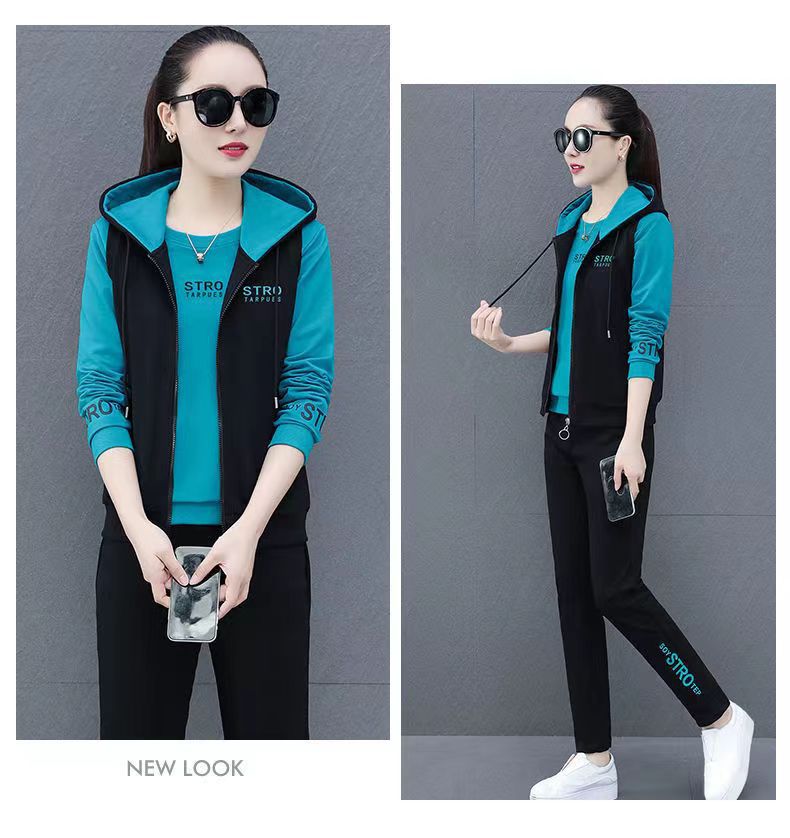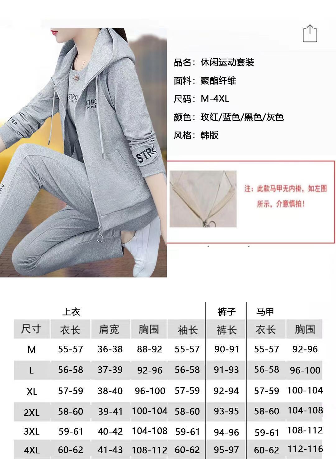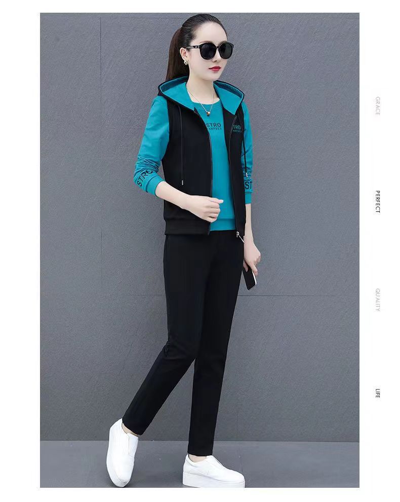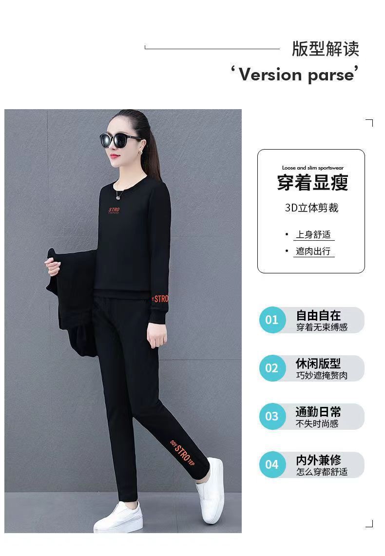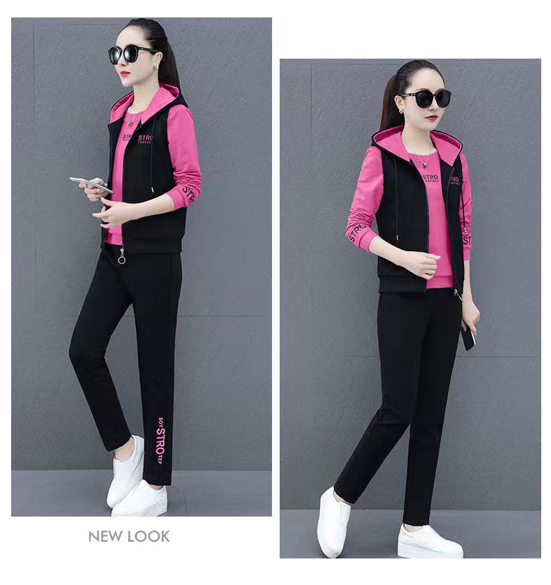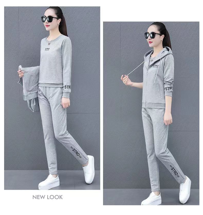 春秋季三件套女2024新款韩版秋季长袖卫衣大码休闲运动服套装女装