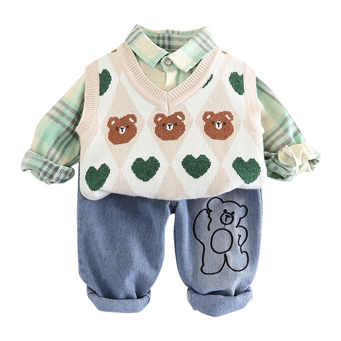 男童宝宝秋装毛衣背心三件套2024新款1一2岁婴儿衣服儿童针织套装