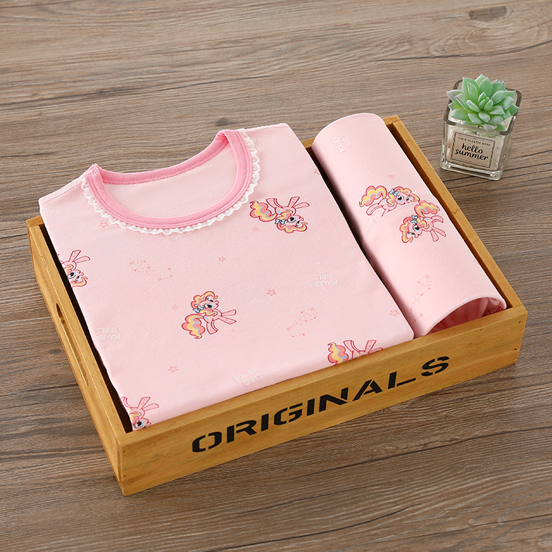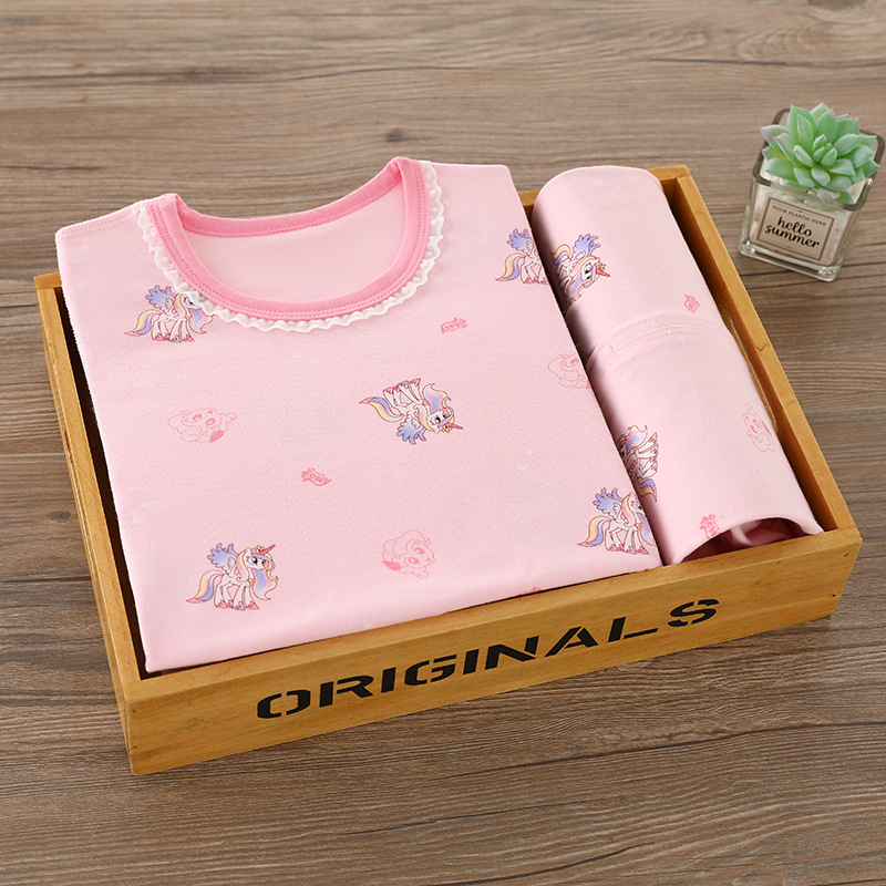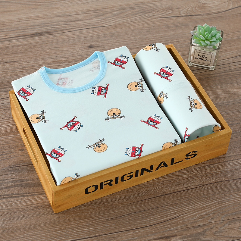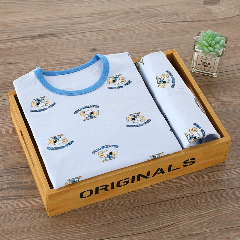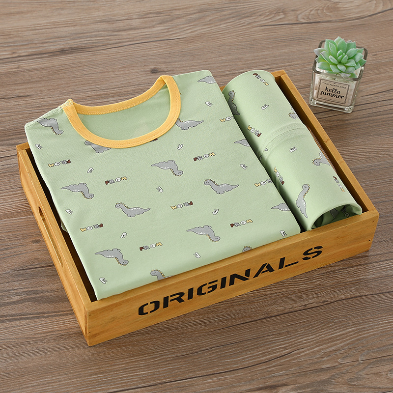 儿童家居服100%纯棉亲肤莱卡两件童装A类男女秋衣秋裤中大童套装