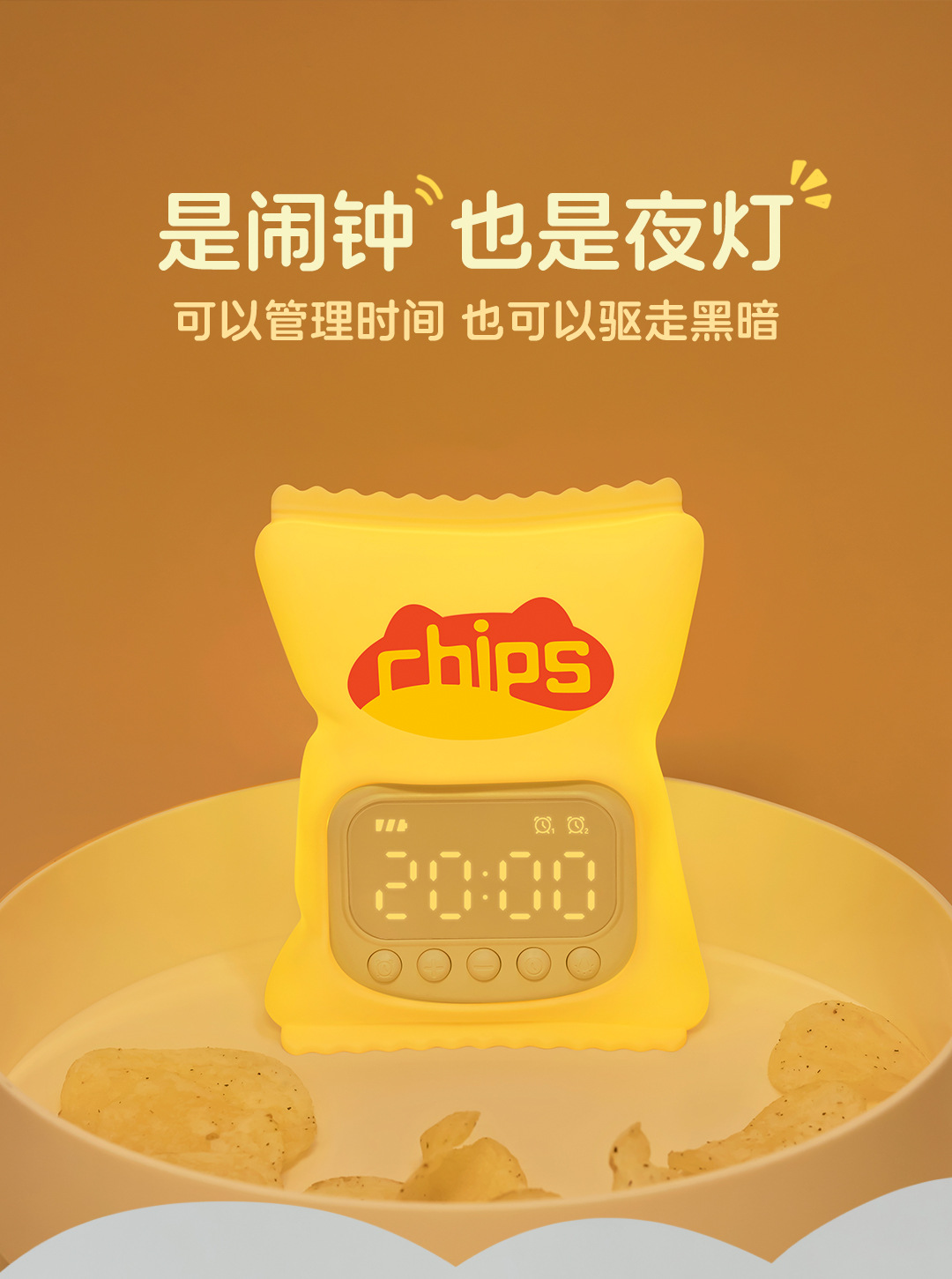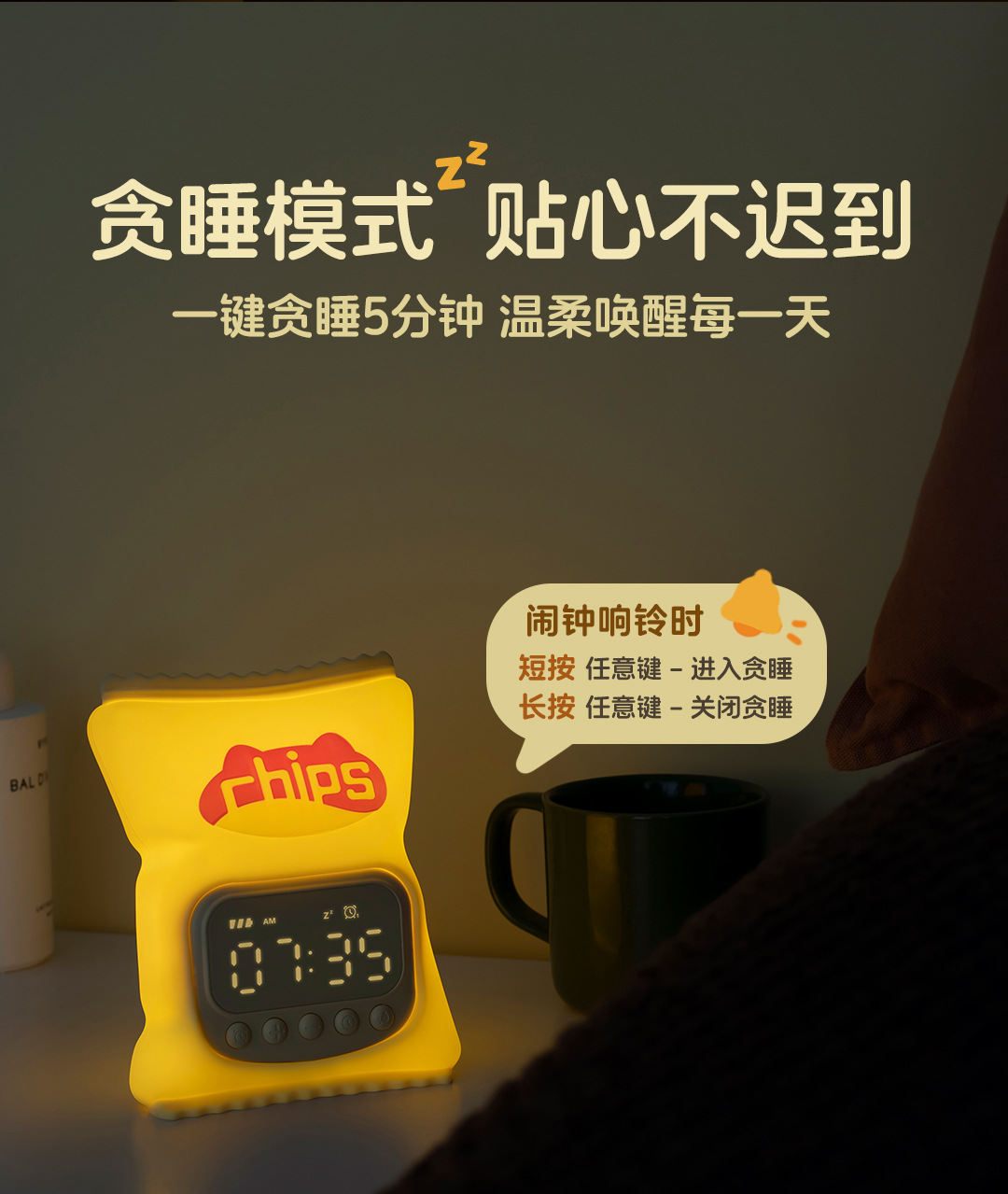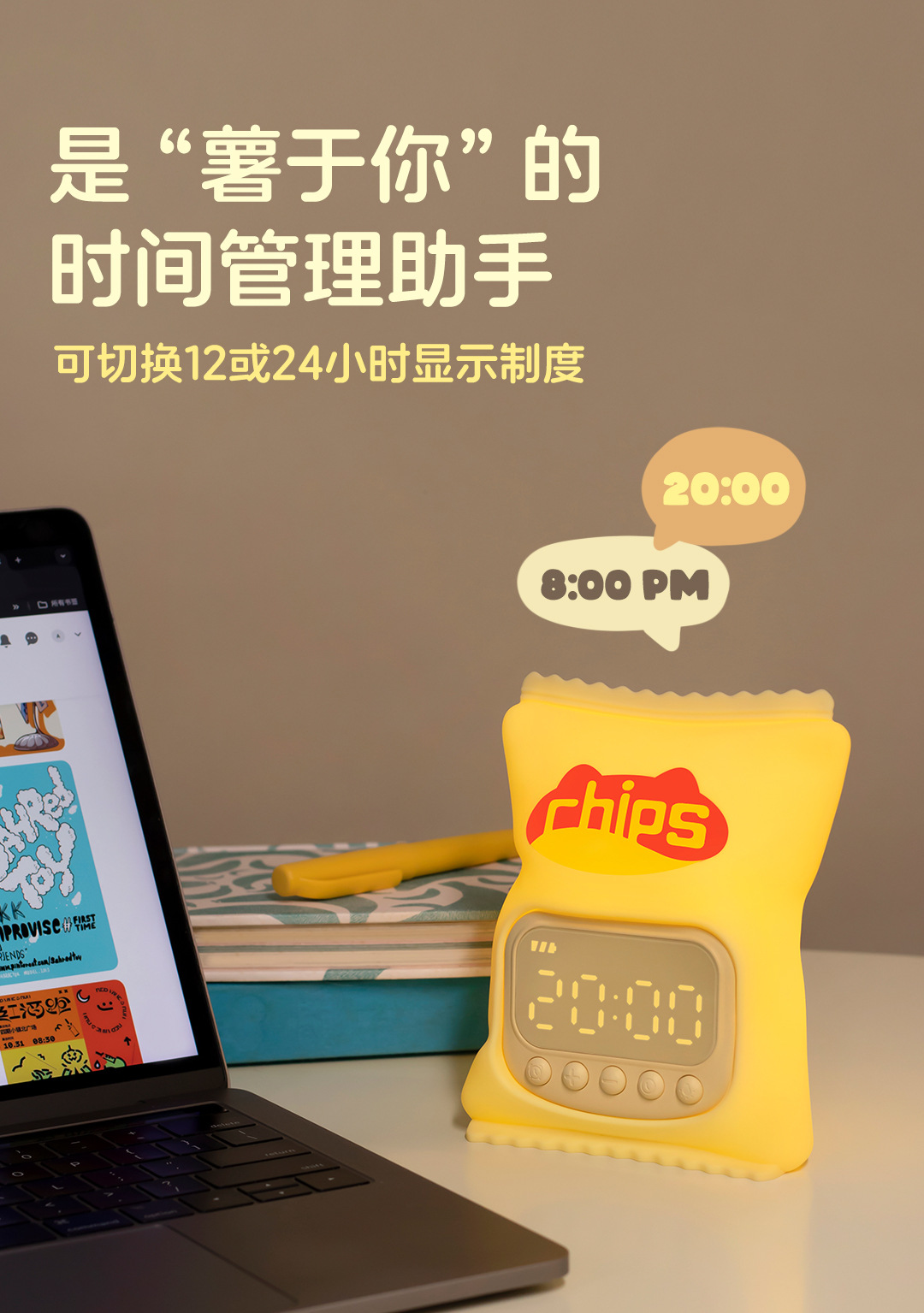 薯于你 创意闹钟 学生闹钟 可爱闹钟 薯片闹钟 卡通闹钟 带灯闹钟