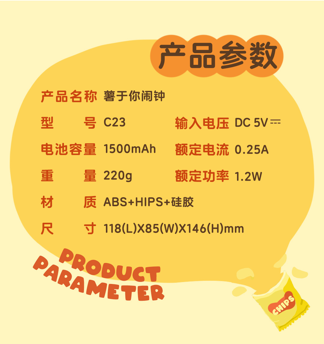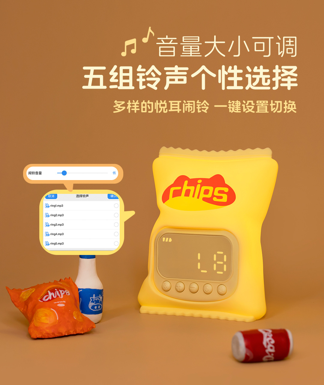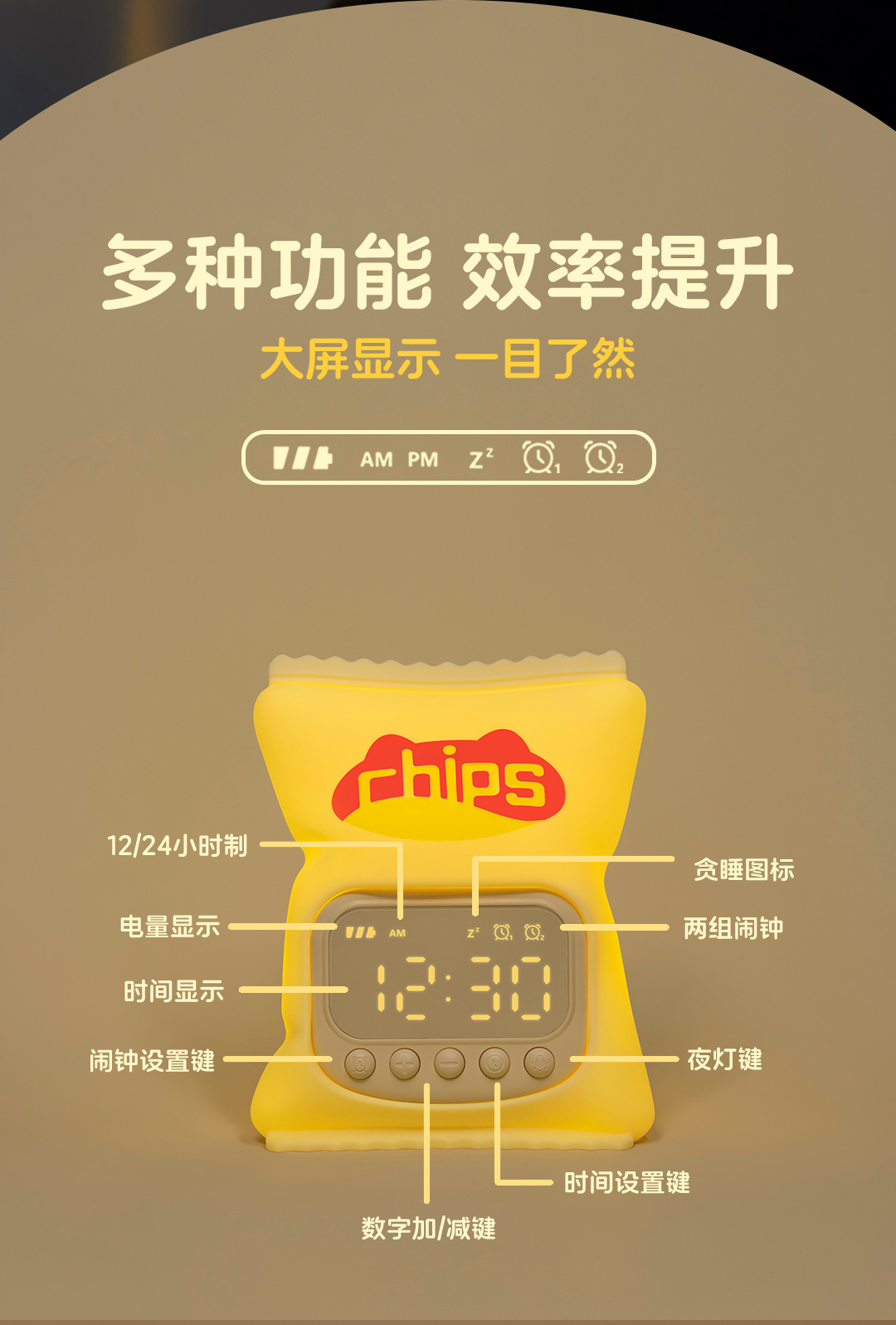 薯于你 创意闹钟 学生闹钟 可爱闹钟 薯片闹钟 卡通闹钟 带灯闹钟
