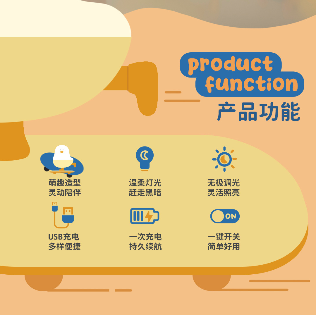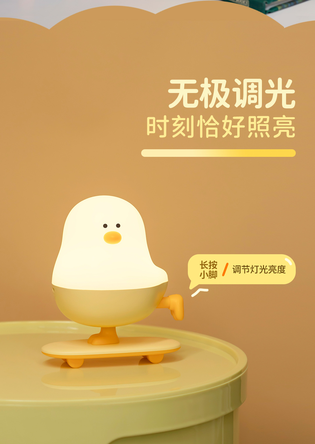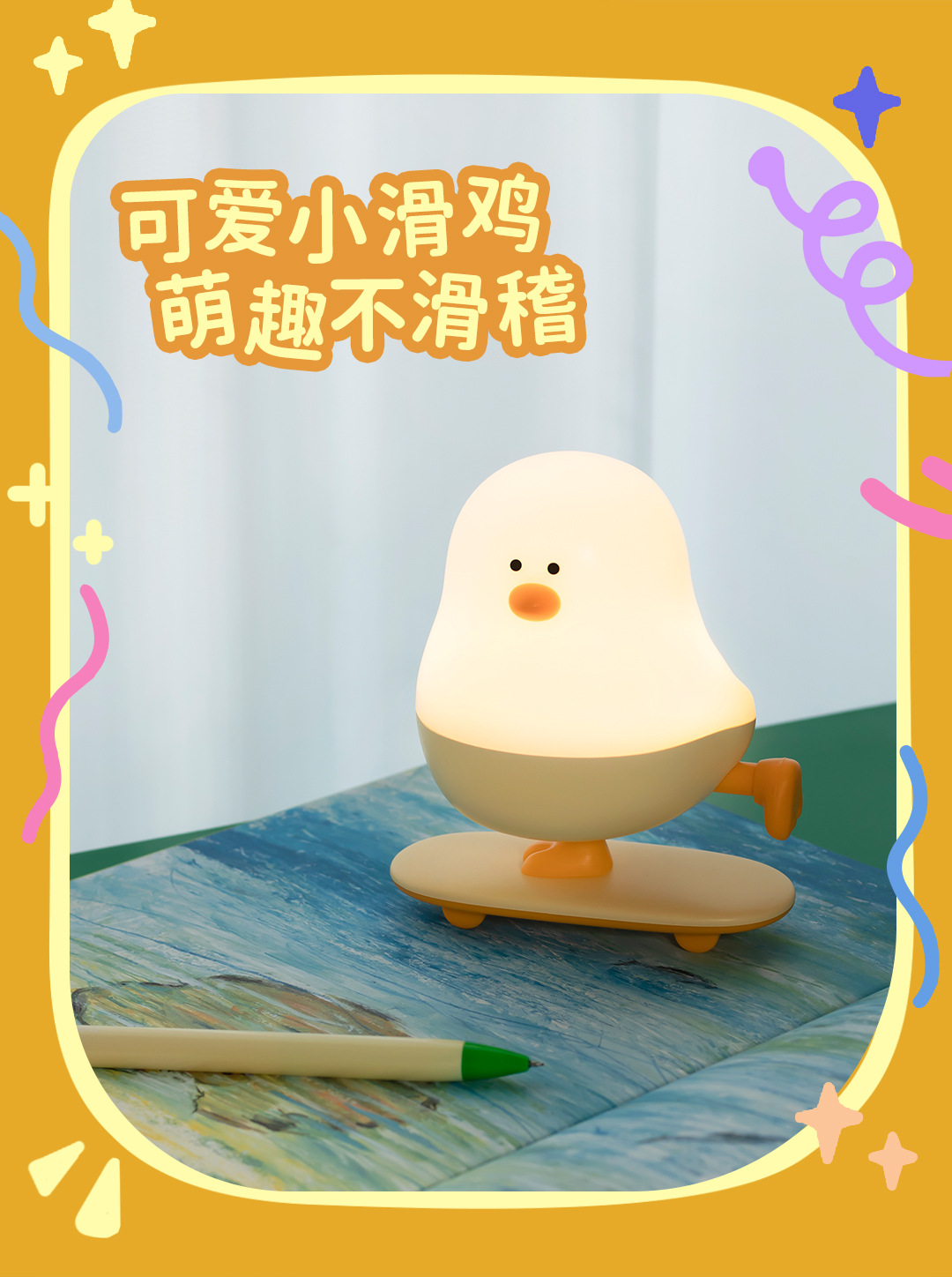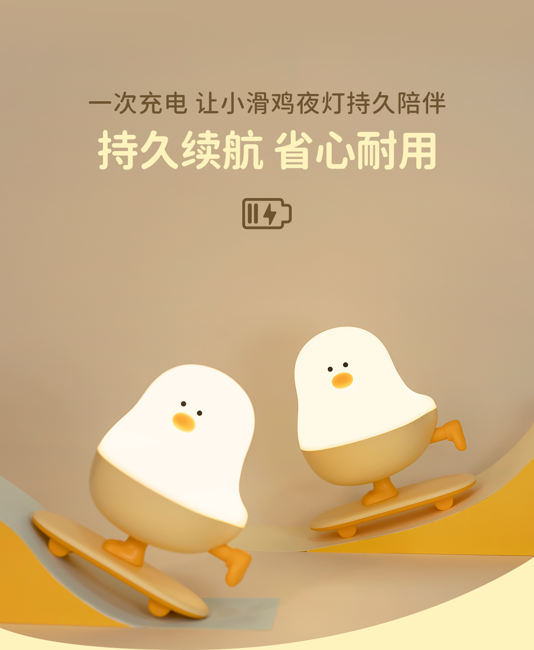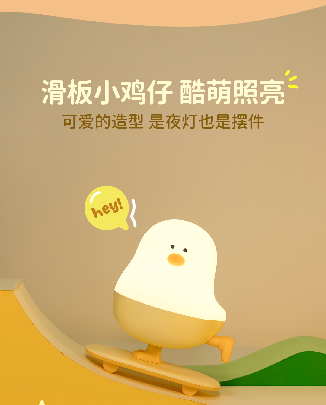 小滑鸡 创意夜灯 可爱夜灯 小鸡夜灯 卡通夜灯 动物夜灯 滑板夜灯