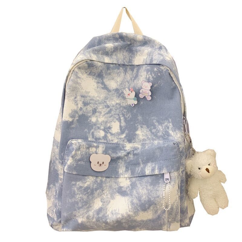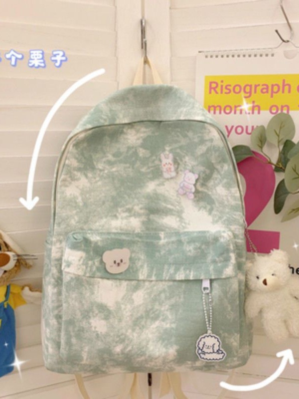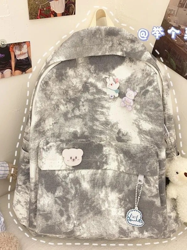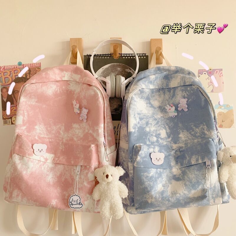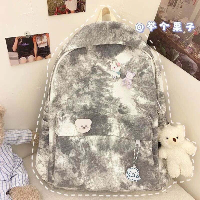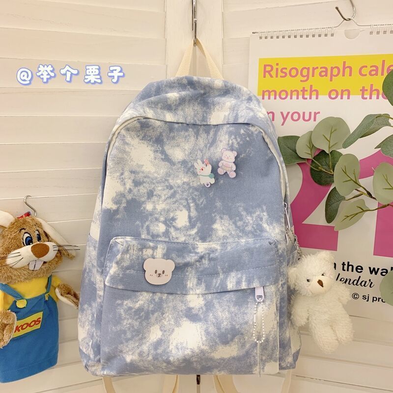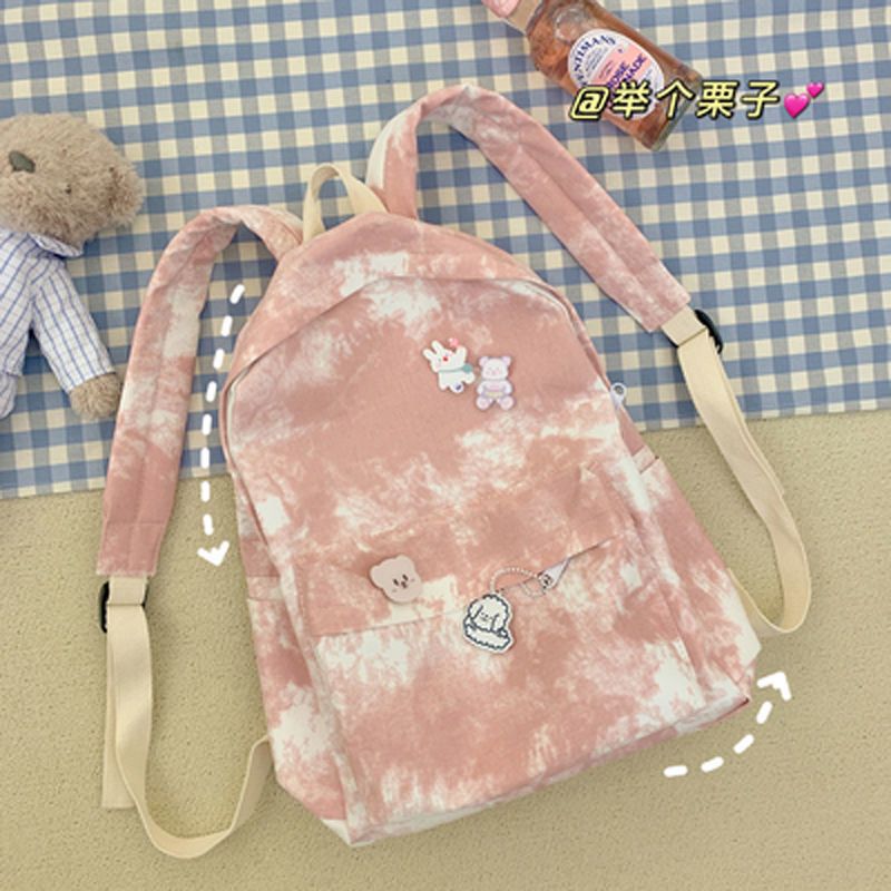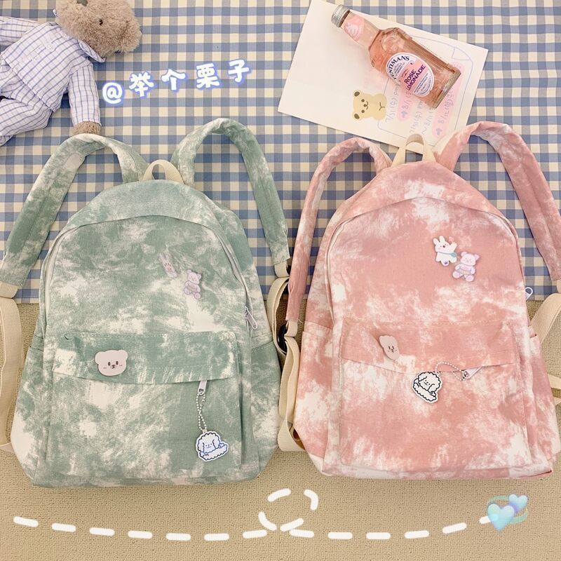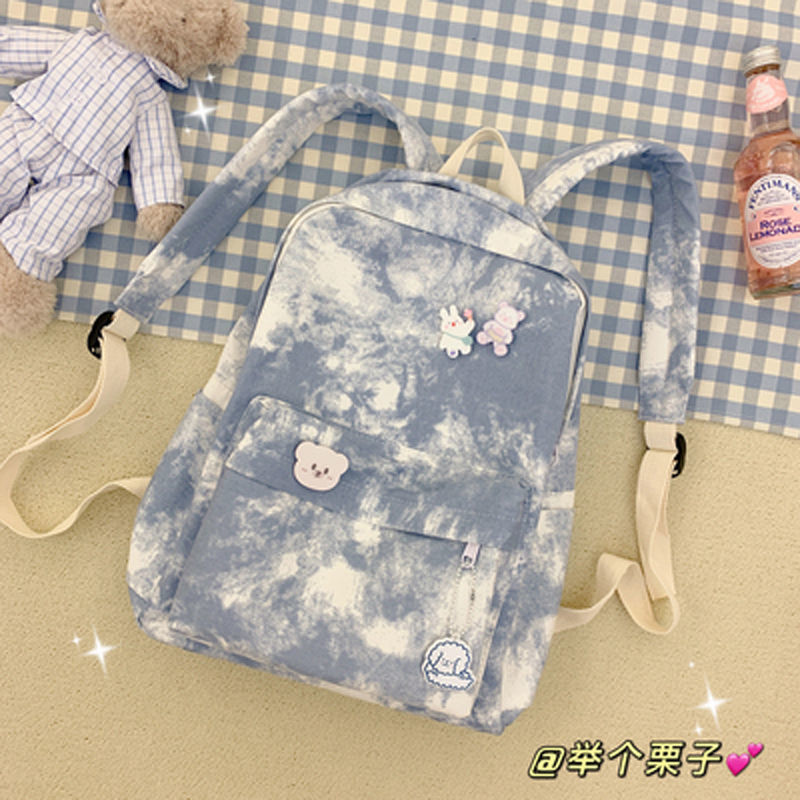 书包女韩版大学生森系百搭复古扎染帆布双肩包ins日系初中生背包
