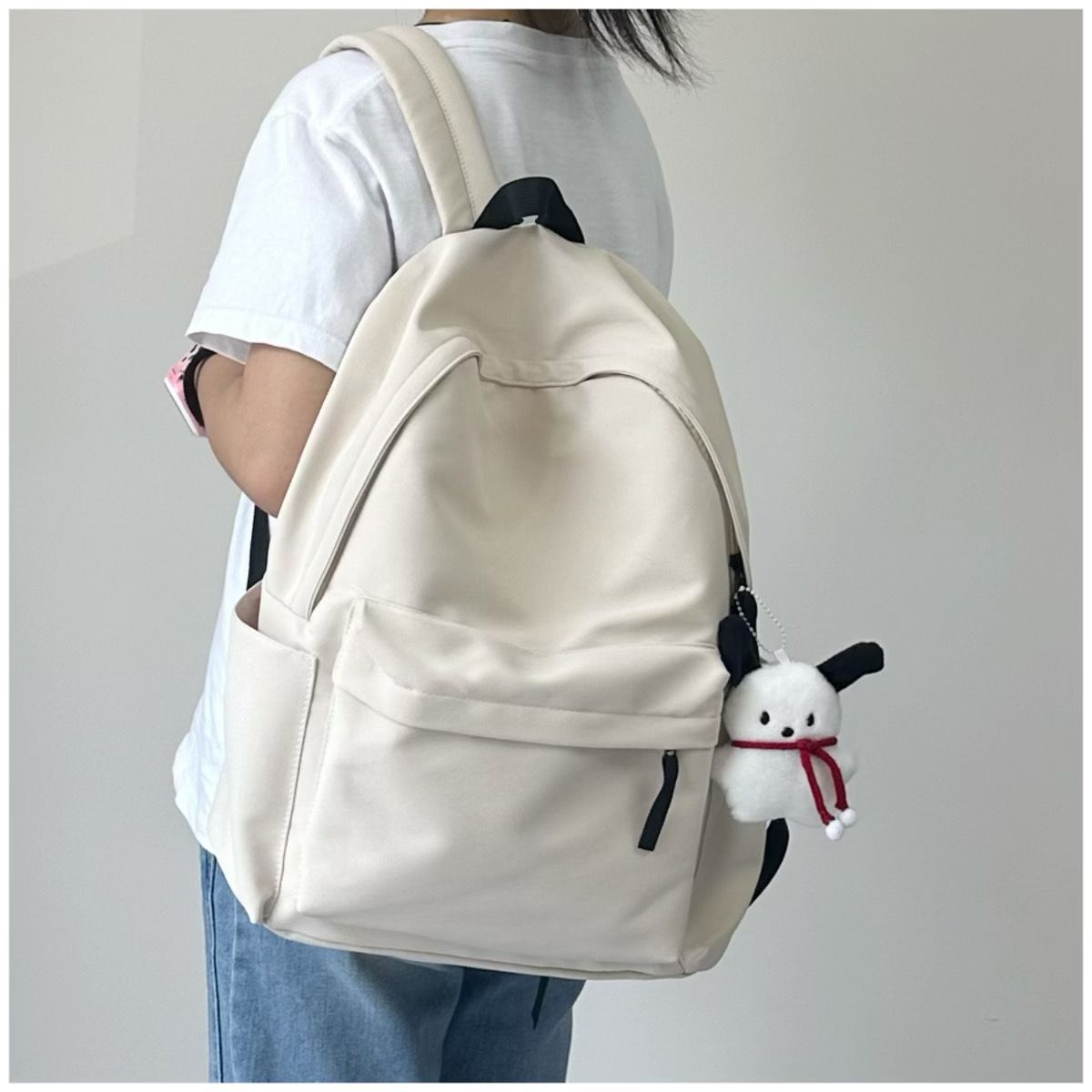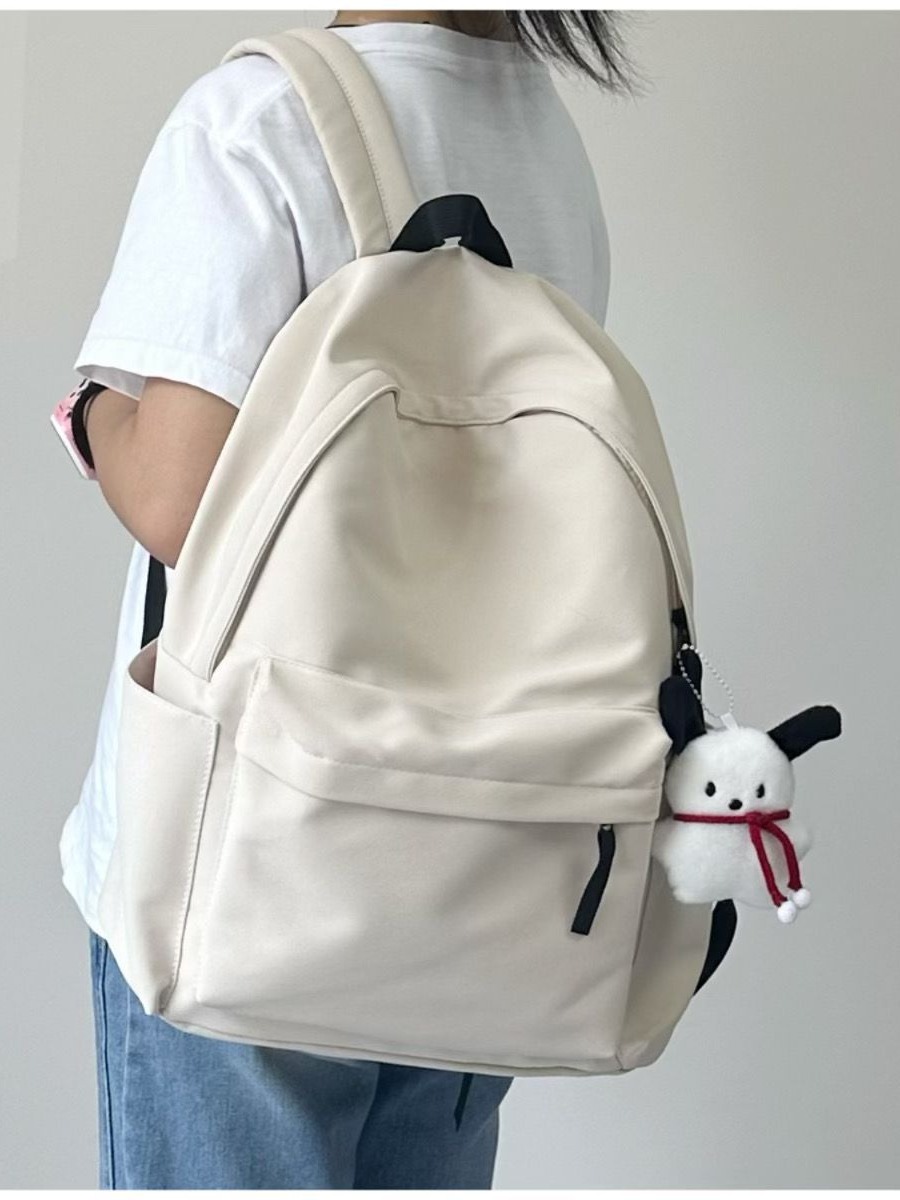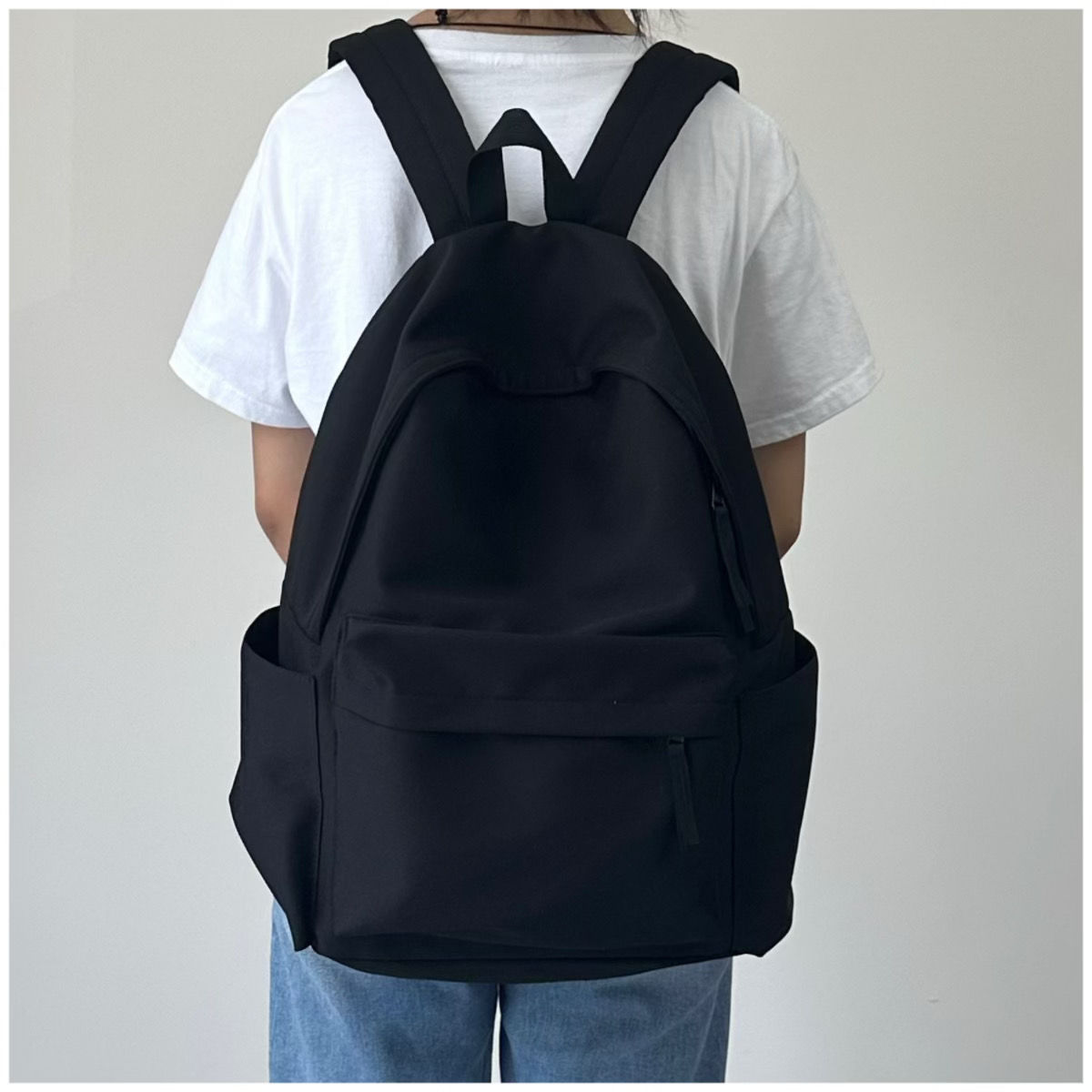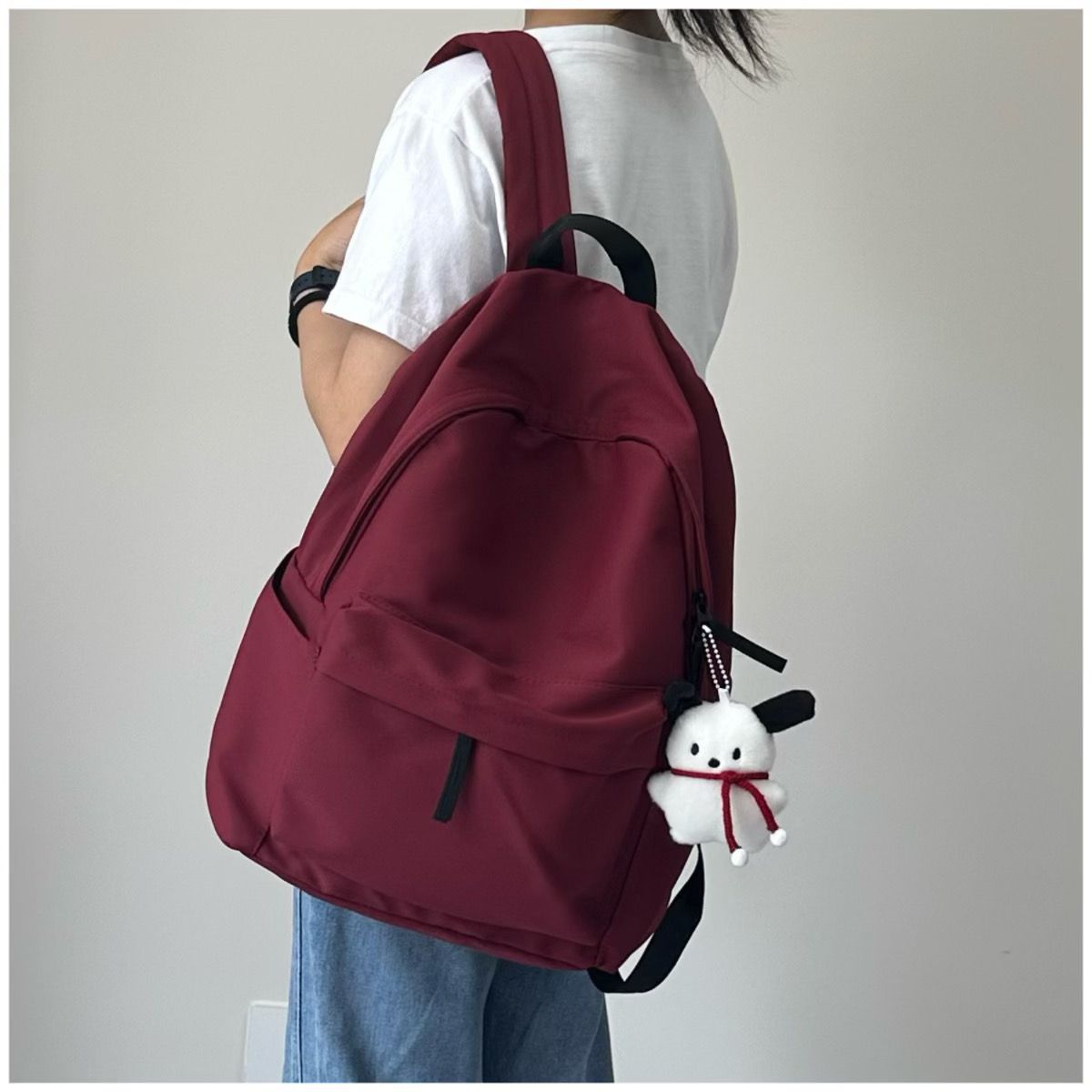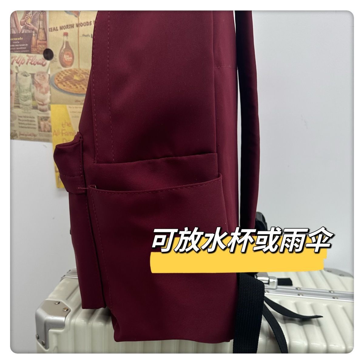 日系书包少女古着感纯色百搭双肩包初中高中大学生大容量背包男生
